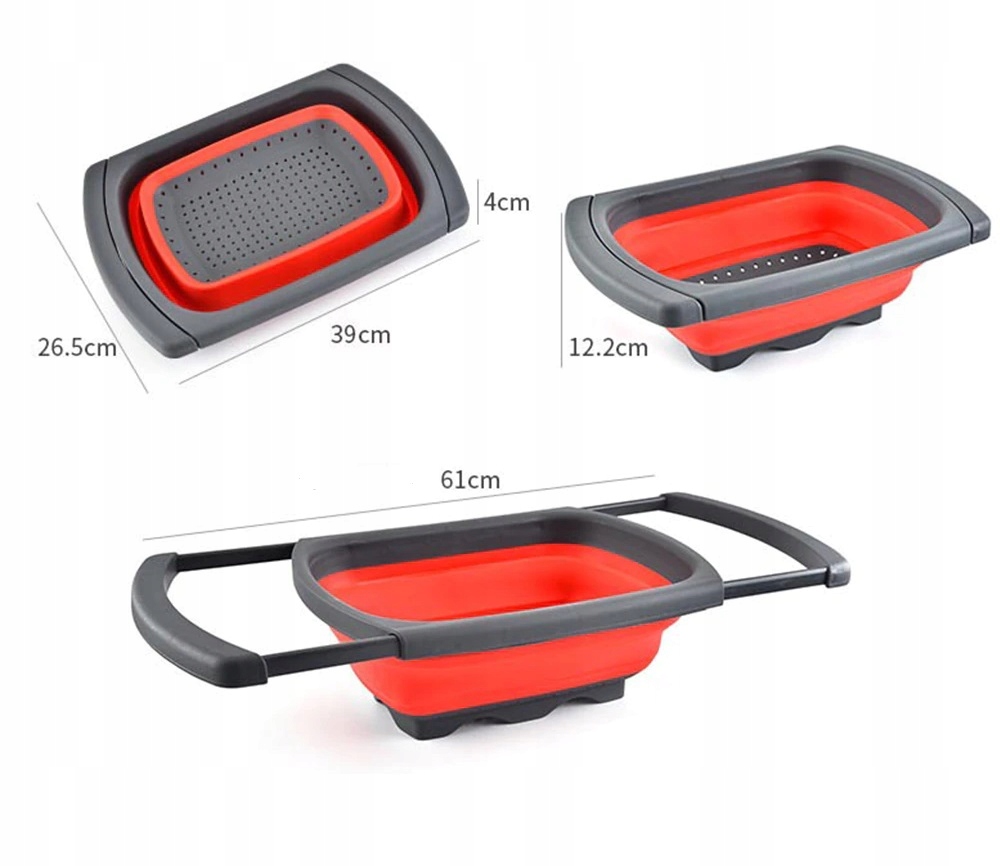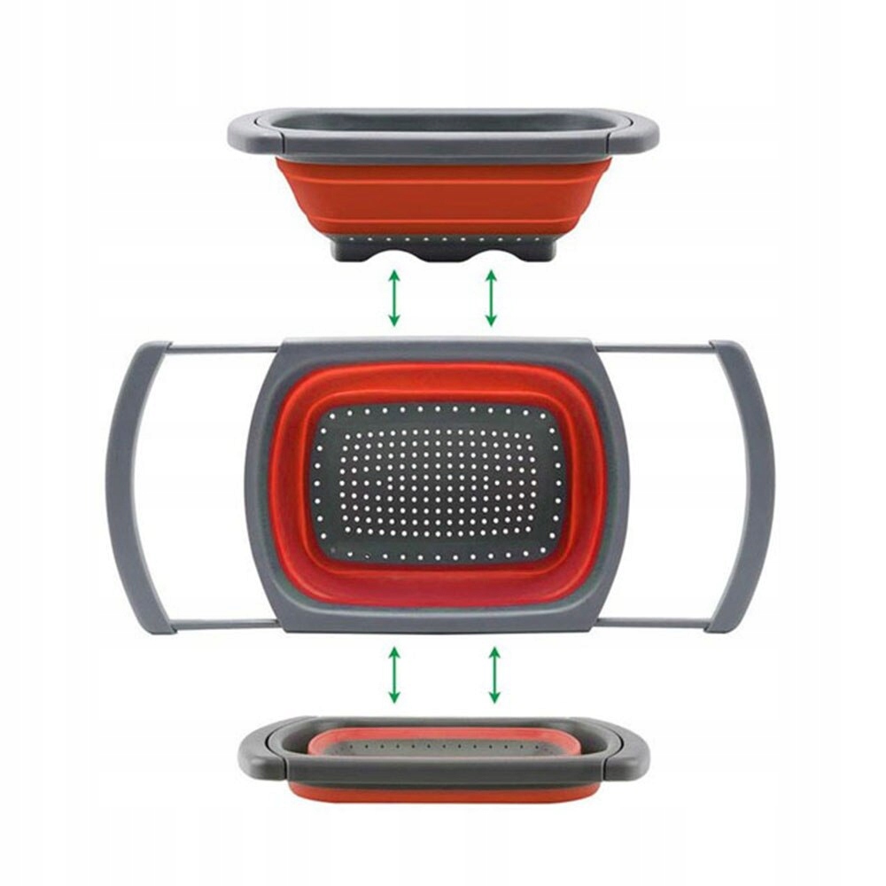 - Большой складной силиконовый дуршлаг практичен и удобен, занимает очень мало места.