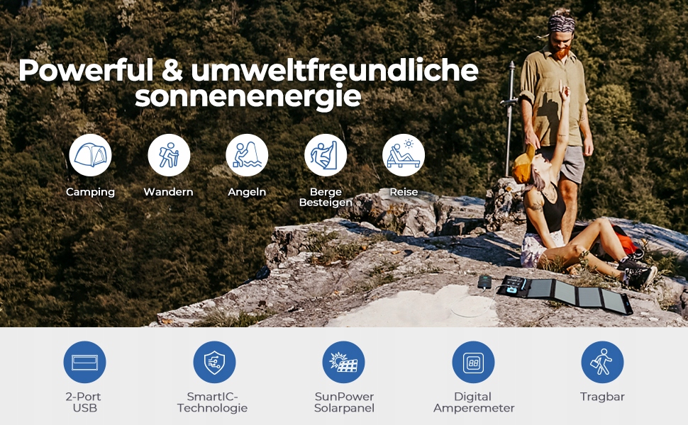 зеленый метод зарядки оборудования; Наслаждайтесь легкой зарядкой для устройств, его можно использовать везде, с неограниченной, чистой и бесплатной солнечной энергией. Монокристаллическая солнечная панель 28 Вт повышает эффективность на 21,5% до 23,5%, поэтому панель сокращает время зарядки вдвое по сравнению с традиционными солнечными батареями. Новая технология MPPT автоматически обнаруживает подключенное устройство для обеспечения максимально возможной скорости зарядки при прямом солнечном свете. Существует цифровой амперметр, который отображает количество усилителей и внутреннюю систему, которая обеспечивает стабильную нагрузку. Легко сообщить, сколько электричества вышло