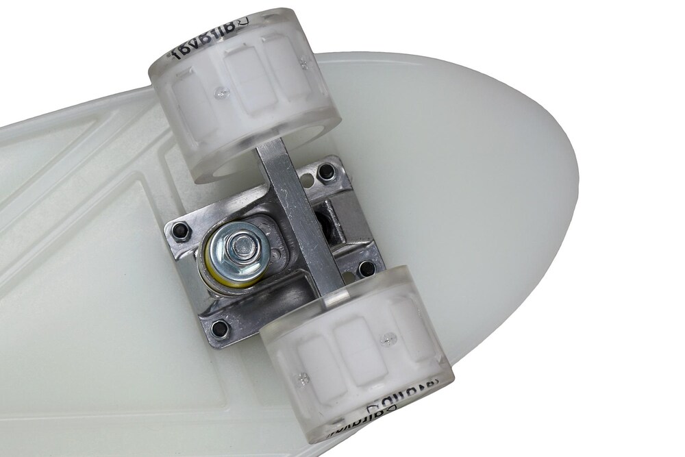 Дека доски изготовлена из очень прочного полипропилена. Кроме того, он был расширен в критической точке — середине скейтборда — для обеспечения максимальной устойчивости.