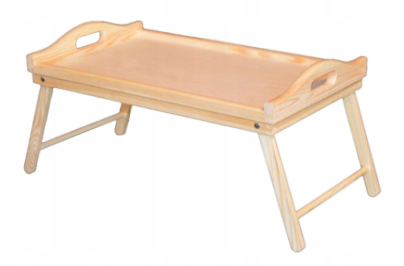 Большой деревянный поднос. Изготовлен из древесины сосны, столешница из фанеры. В сложенном виде его можно использовать как обычный поднос. Полезно на любой кухне, но идеально подойдет в качестве стола для завтрака и под ноутбуком.