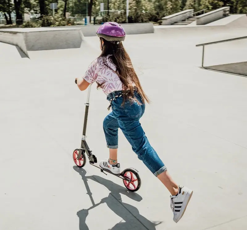 Наш самокат предназначен как для детей старшего возраста, подростков, так и для взрослых. Изготовлен из легкого и прочного алюминиевого сплава, максимальная грузоподъемность — до 100 кг. Соответствует стандарту EN 14619