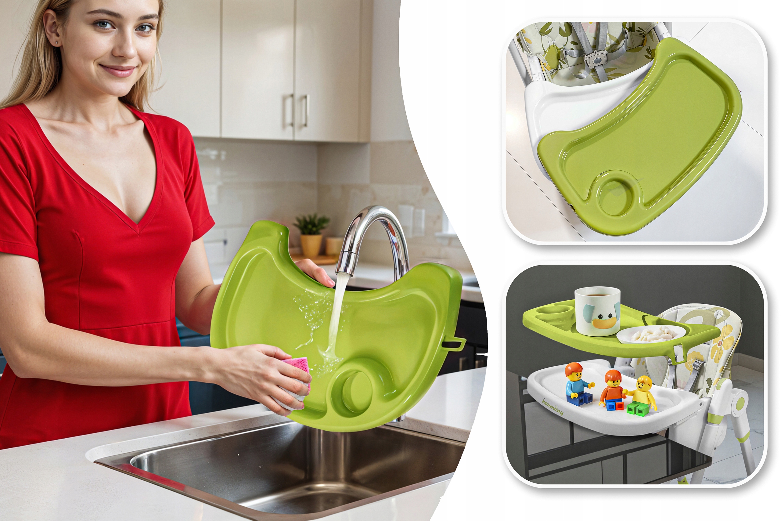- Внешний поднос может быть быстро демонтирован , что облегчает чистку после еды, а основной поднос по -прежнему обеспечивает защиту ребенка.