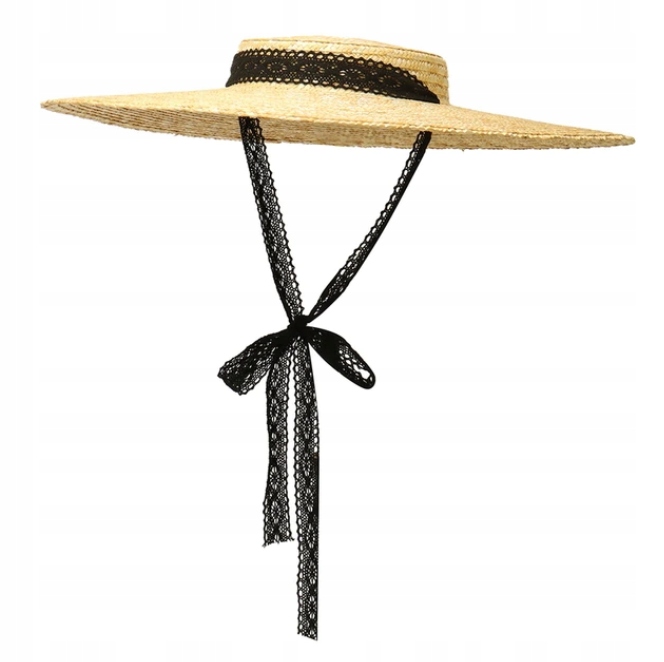 Большая соломенная шляпа ретро женское кружево 55 см