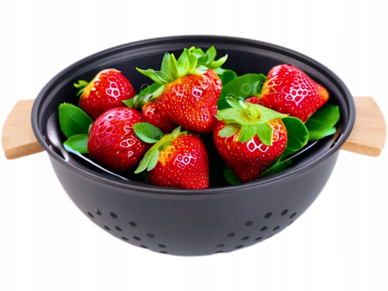 Великий сталевий друшляк 24 х 10 см з бамбуковими ручками - ЧОРНИЙ