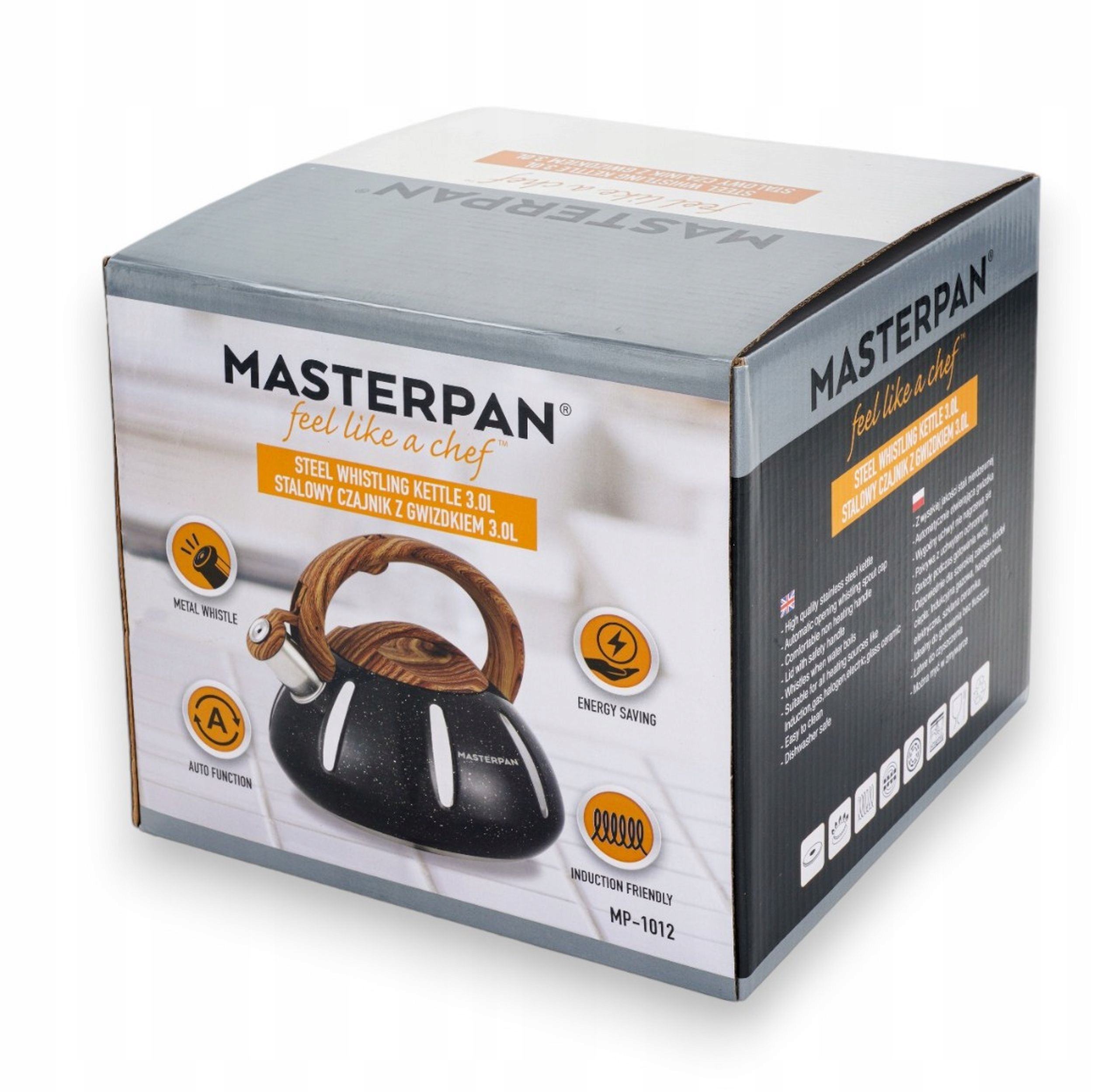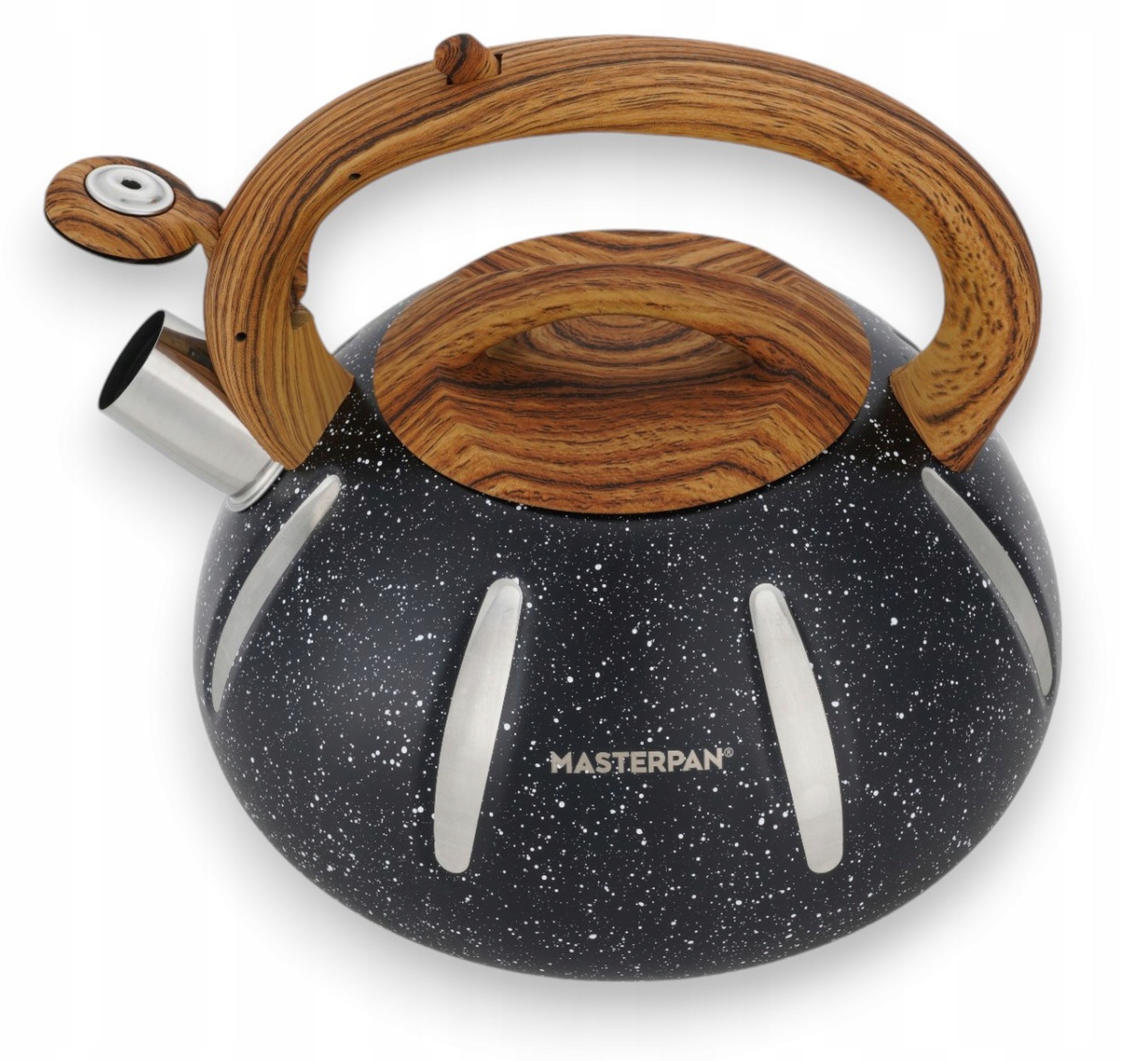 ✅ Ручка: коричневый, эргономичный, имитирующий древесину, устойчивую к нагреву, со встроенным механизмом открытия свистка.