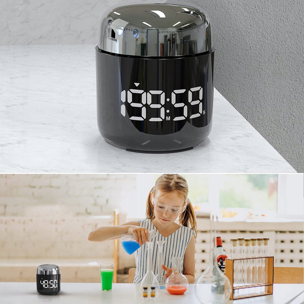 Таймер оснащен большим светодиодным дисплеем, что делает его идеальным дома. Вы можете цифровы вращать кухонный таймер на стойке или на столе, чтобы установить время. Уникальная торговая функция с храповым, используя его еще более приятным. Две силиконовые прокладки внизу предотвращают скольжение устройства.