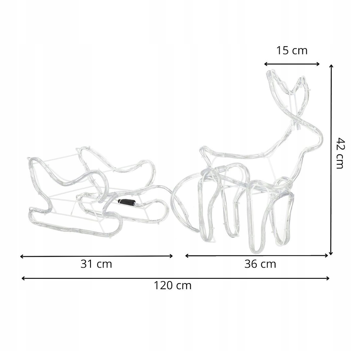 Прочная, гибкая крышка легкой цепи имеет толщину почти 9 мм и имеет класс IP44 — параметр, указывающий на то, что вы легко можете разместить Светодиодные олени как внутри, так и снаружи дома – в саду, на террасе, балконе. В комплект также входят металлические колышки, с помощью которых можно прикрепить оленя и сани к земле. Стабильная металлическая конструкция обеспечивает постоянную форму установки.