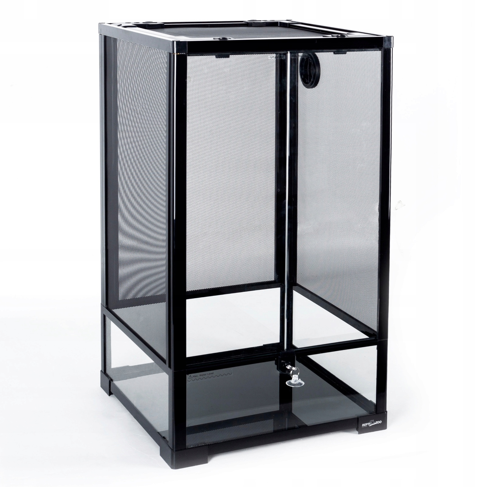 Верхняя крышка террариума изготовлена из стальной сетки, устойчивой к высоким температурам и ржавчине. Эта сетка полностью съемная, что облегчает доступ к внутренней части террариума, не рискуя сбежать или причинить животному стресс. При этом он фиксируется специальными замками, не позволяющими сбежать даже самому сильному питомцу. Сетка обеспечивает отличный газообмен и дополнительно защищает питомца от ожогов при контакте с нагревательной лампой.