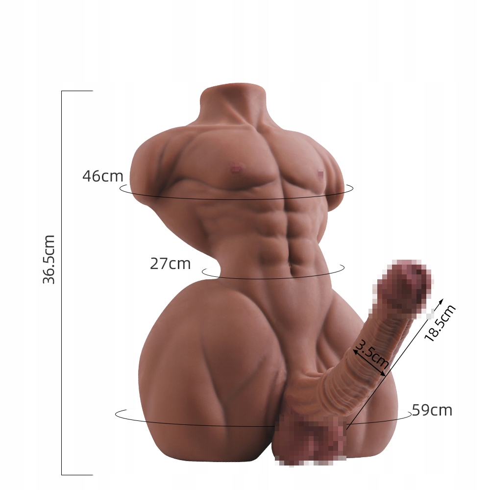 Мужской торс правильной формы, толстый и длинный пенис. Красиво скульптурное тело, плоский живот, мускулистая грудь и, самое главное, большой, эрегированный пенис, скрывающий красиво выбритые яички. Пенис имеет встроенный «гребень», его можно сгибать в любую сторону и оставаться в фиксированном положении. Кроме того, на кукле можно кататься, его пенис можно брать в руки. в рот и заниматься оральным сексом, вы можете положить в его тугую попку все, что захотите, и одновременно играть с его членом. Это идеальный выбор для женщин и мужчин, которые раньше не могли позволить себе купить такую реалистичную куклу.
