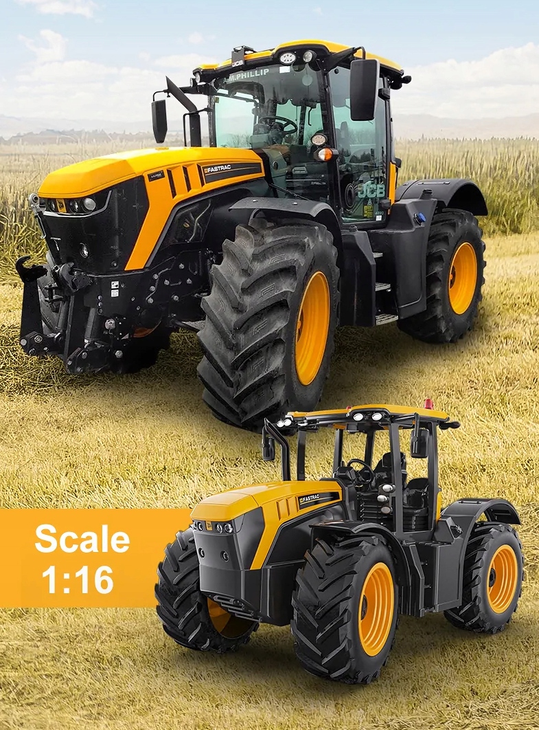 ☑ Удаленный -контролируемый трактором JCB производится по шкале 1/16 в сочетании с реалистичным трейлером, оснащенным светом и звуками, которые обеспечивают реалистичное веселье.