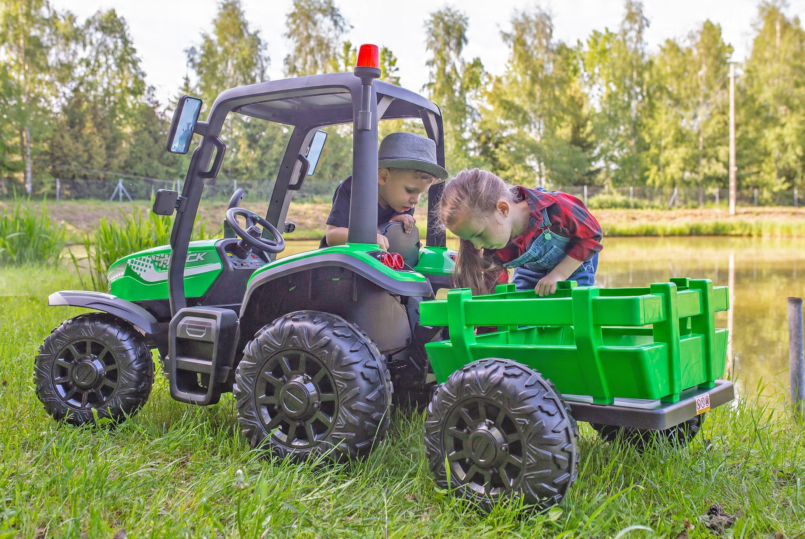 Великий трактор з причепом для дітей, живлення від акумулятора 24V, 400WAT + ПУЛЬТ