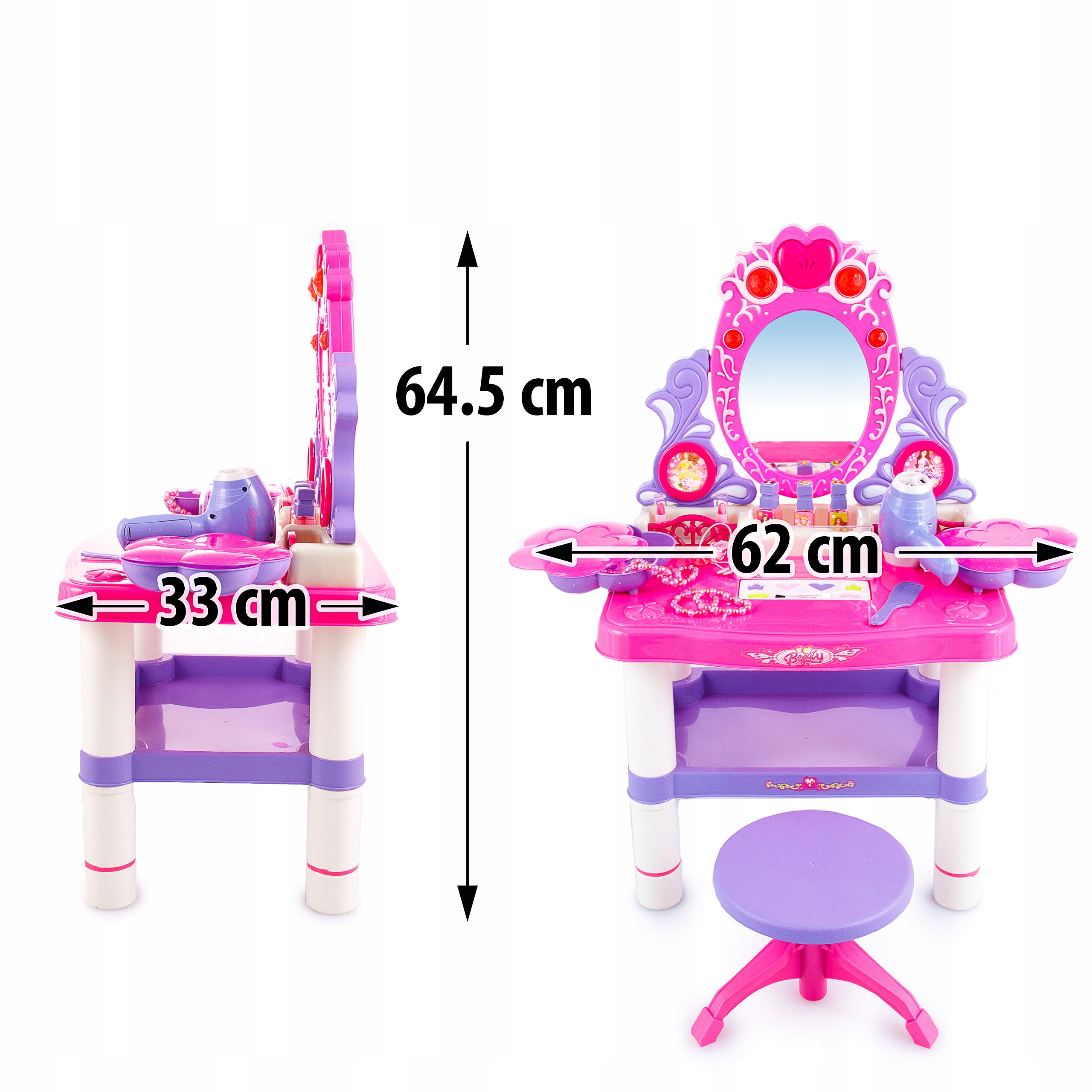 - Фантастический туалетный столик для вашей дочери - позволит ей почувствовать себя настоящей принцессой. Множество аксессуаров наверняка заставят вашего ребенка играть долгое время. В набор входит все, что понадобится маленькому стилисту.Туалетный столик, который украсит комнату маленькой принцессы.