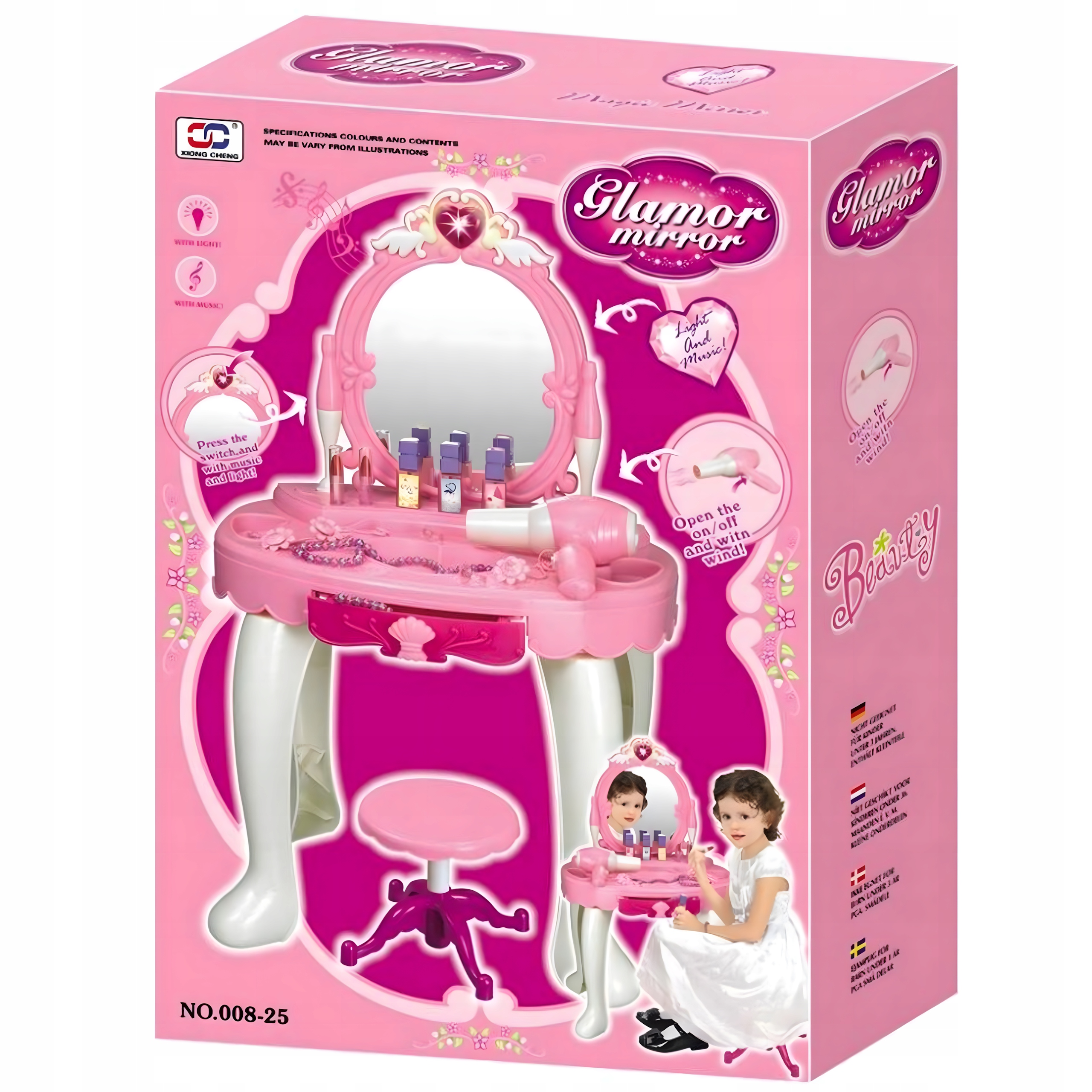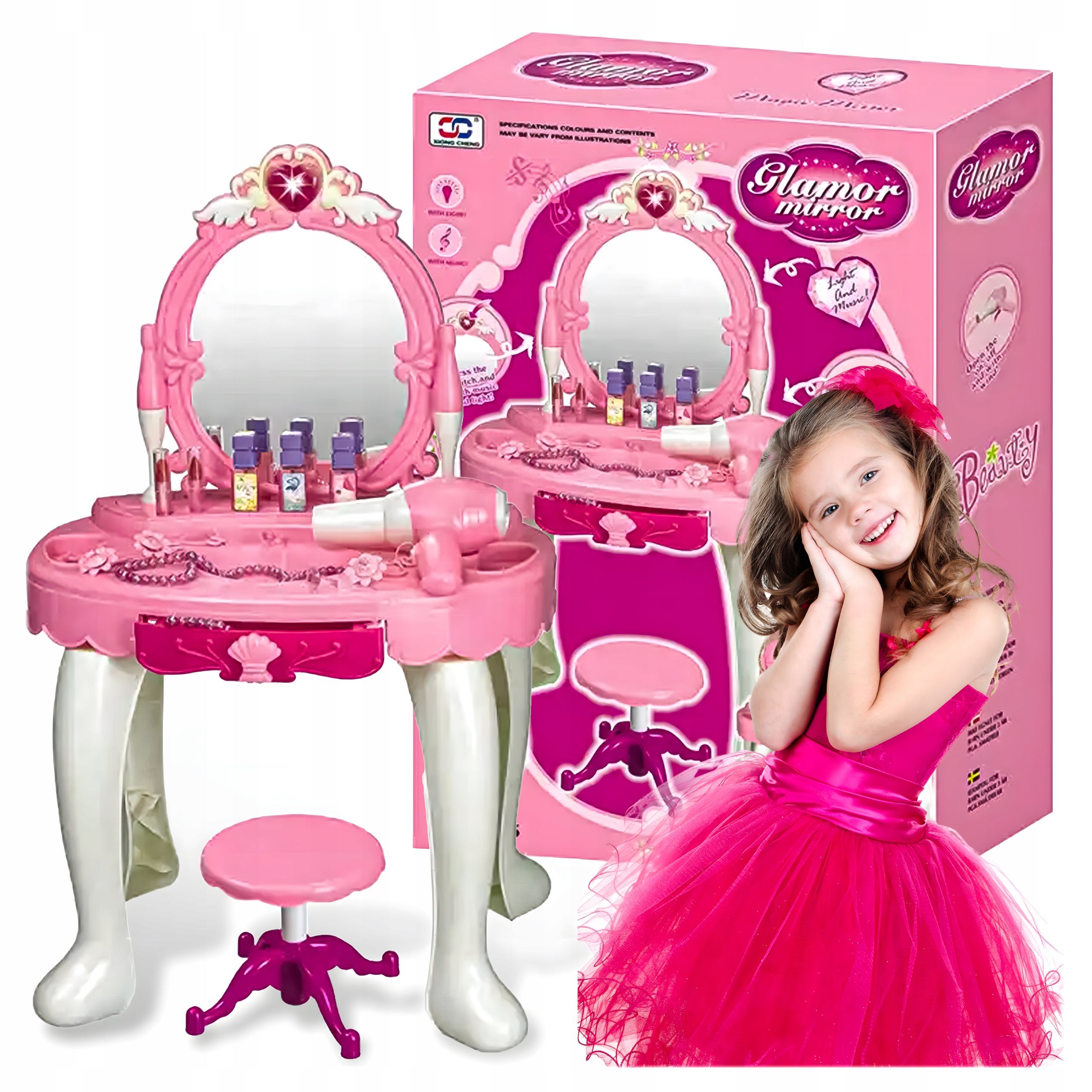БОЛЬШОЙ ТРУБОЙ СТОЛИК С АКСЕССУАРАМИ, ТАБУРЬКОЙ И ОСВЕЩЕНИЕМ ДЛЯ ДЕВОЧКИ.
