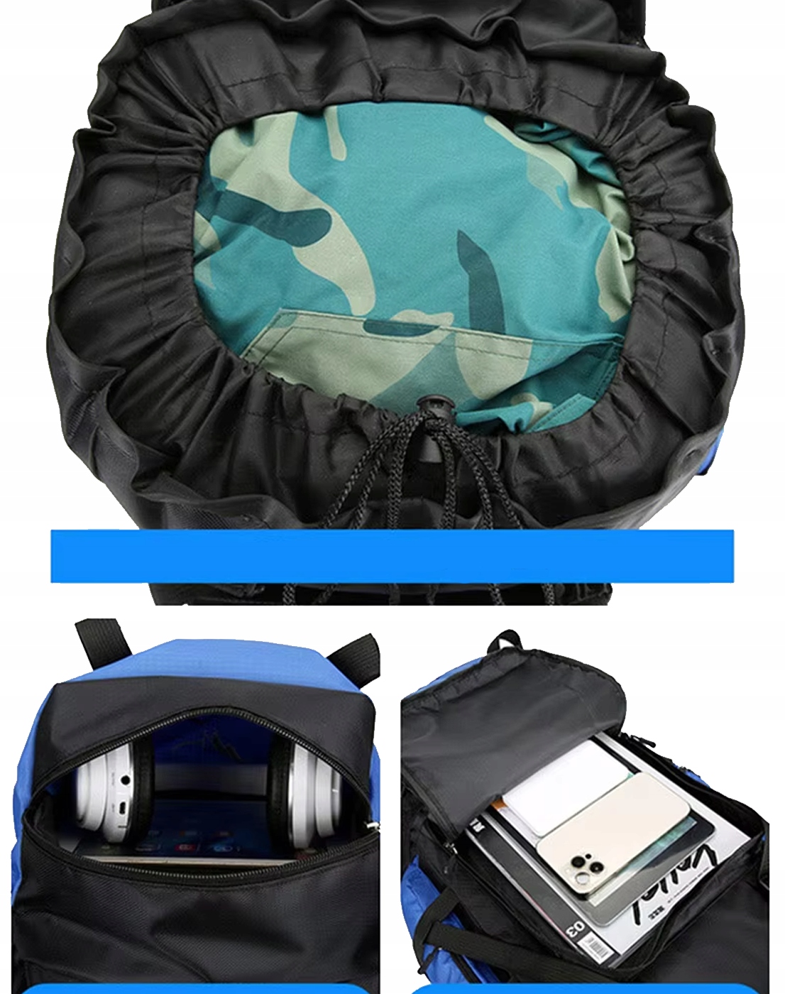Туризм/кемпинг/блуждание/скалолочные горы и карманы для хранения на вершине рюкзака. Громовая мощность может адаптировать эластичность и комфорт груди в любое время. Система вентиляции с подвеской на задней и внизу истощает пот на спине и талии. В рюкзаке также есть ремень талии, который застегивает рюкзак и перемещает вес к плечам.