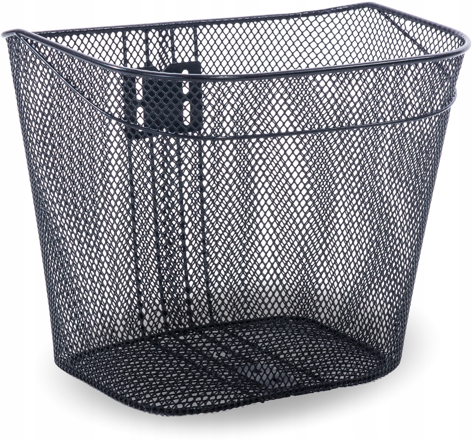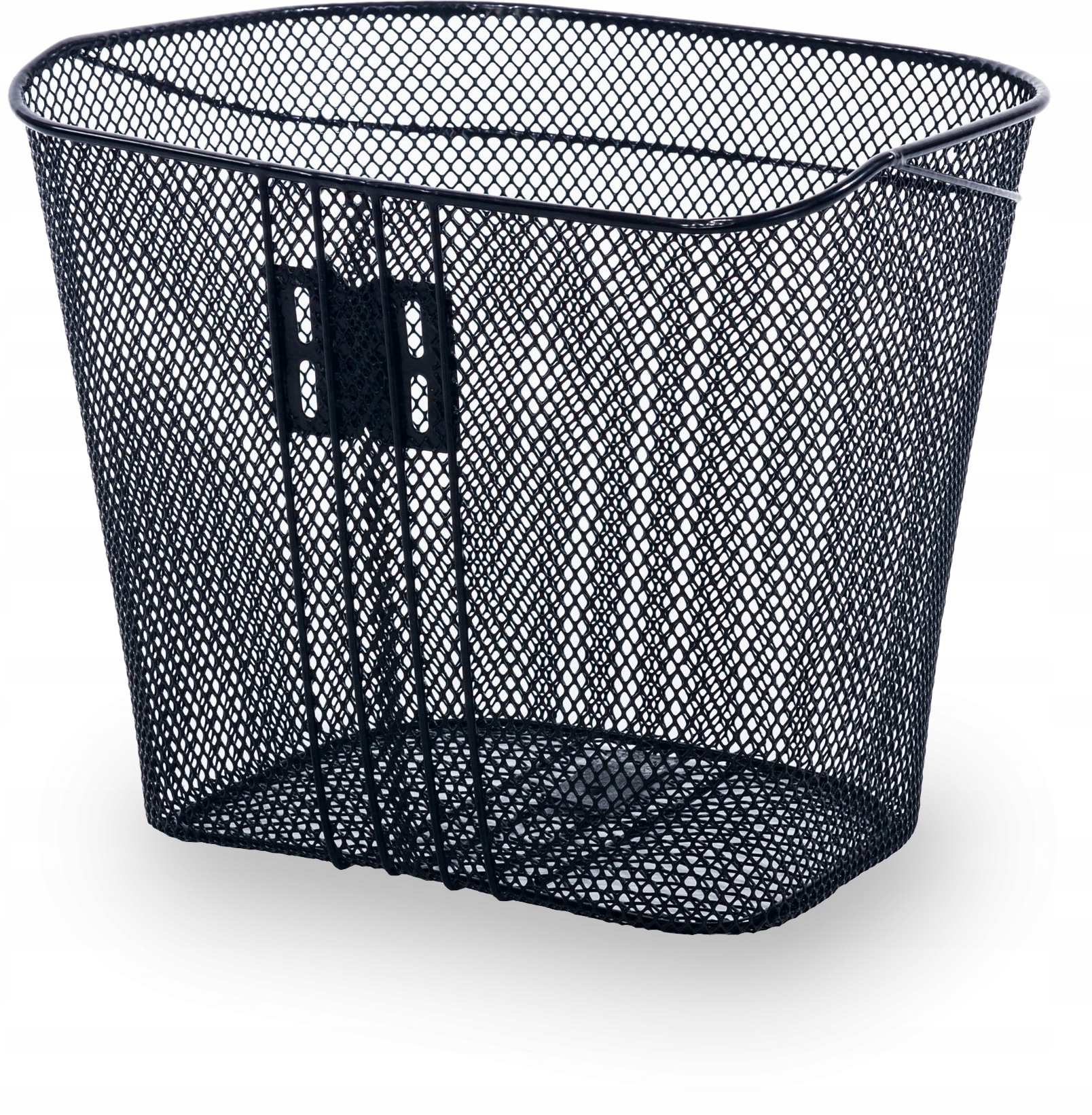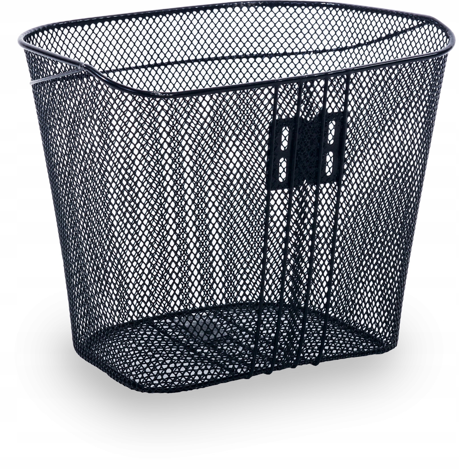 Универсальная корзина, предназначенная для постоянного крепления к рулю велосипеда с нижним кронштейном, прикрепленным к оси колеса. Изготовлен из стальной сетки, черной, усиленной снизу стальными стержнями, закреплен на держателе под подшипником рулевого колеса для держателя диаметром 25,4 мм (1").