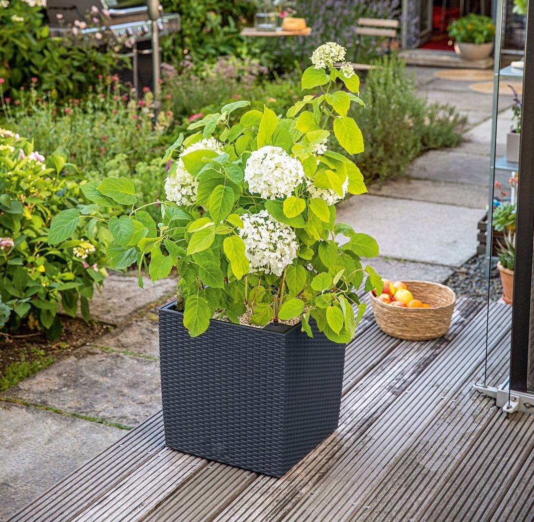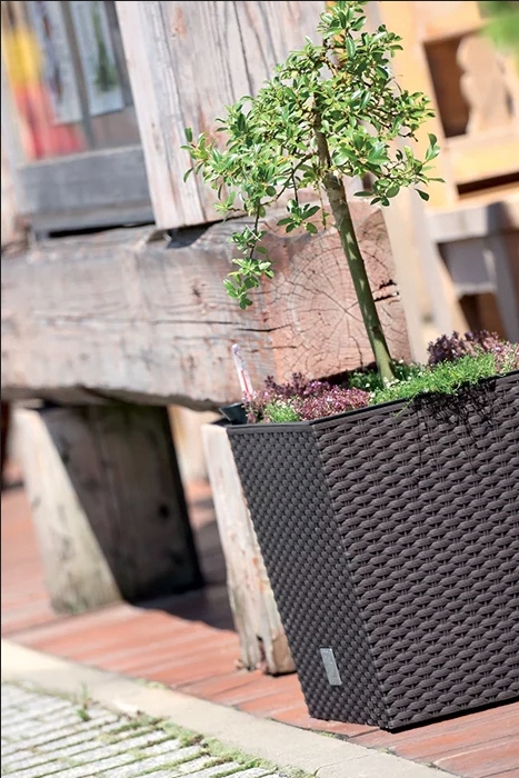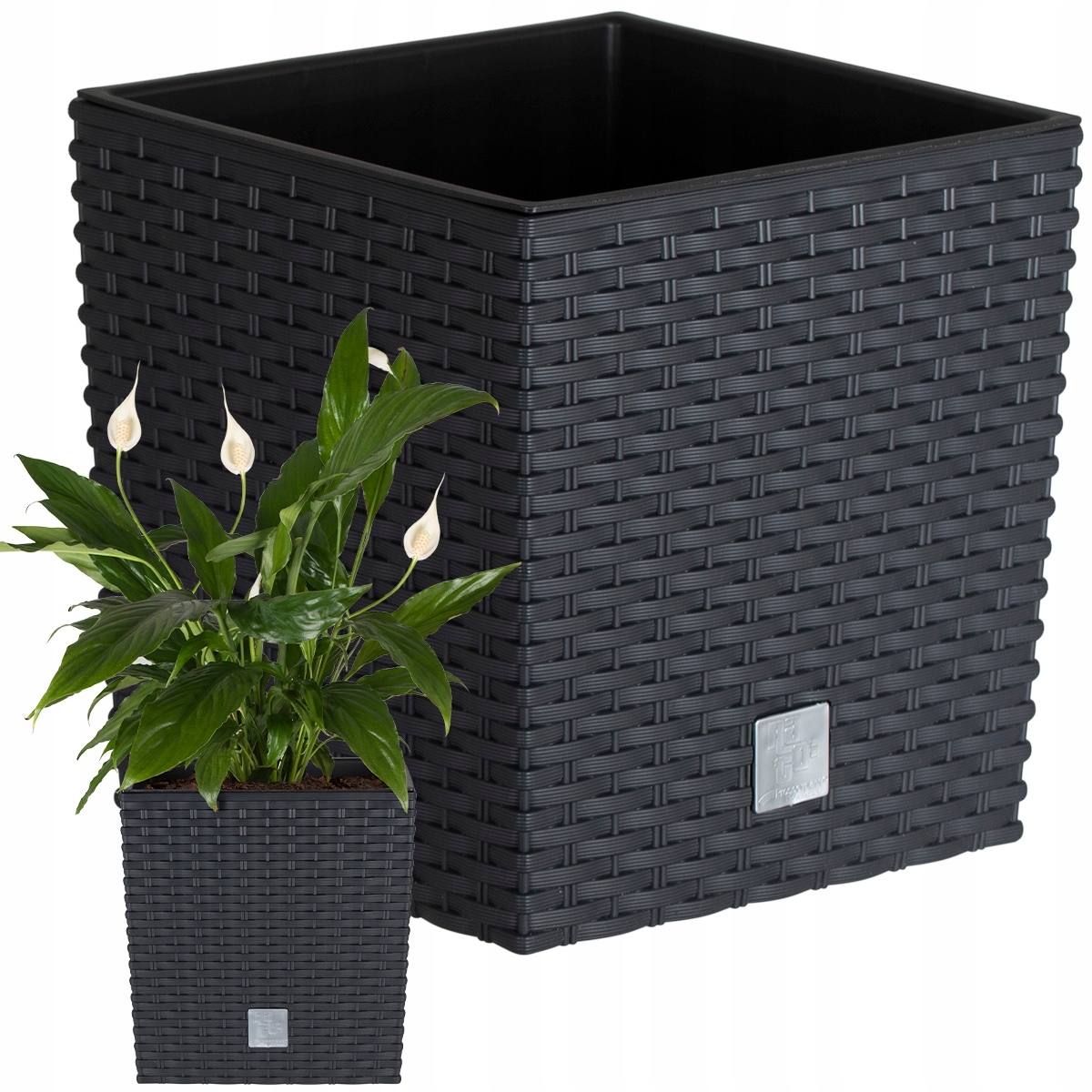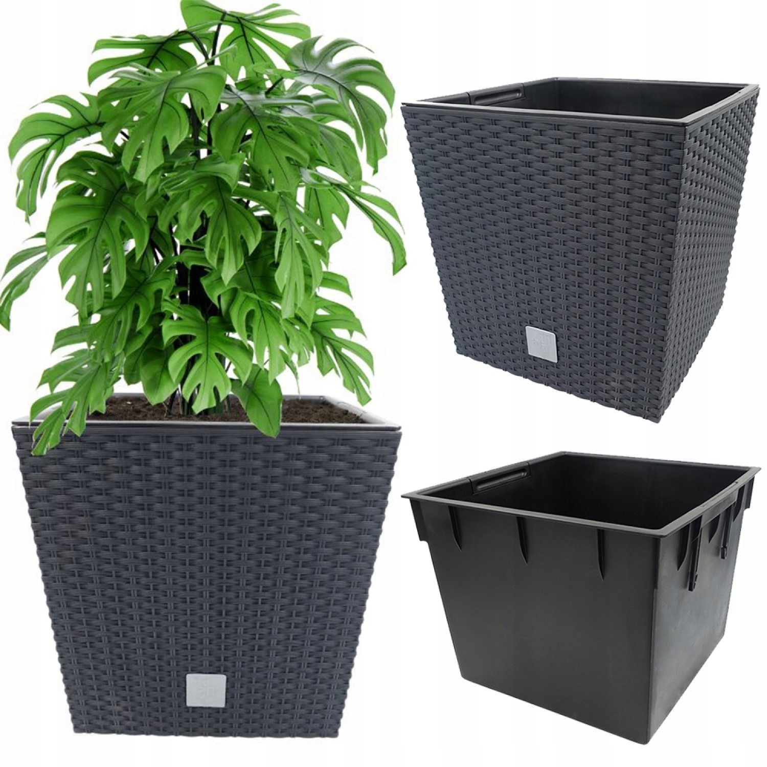 ВЕЛИКИЙ ВІДКРИТИЙ ГОРЗИК ДЛЯ КВІТІВ З РОТАНГУ, антрацит, ЗІ ВСТАВКОЮ НА ТЕРАСНУ НАКЛАДКУ