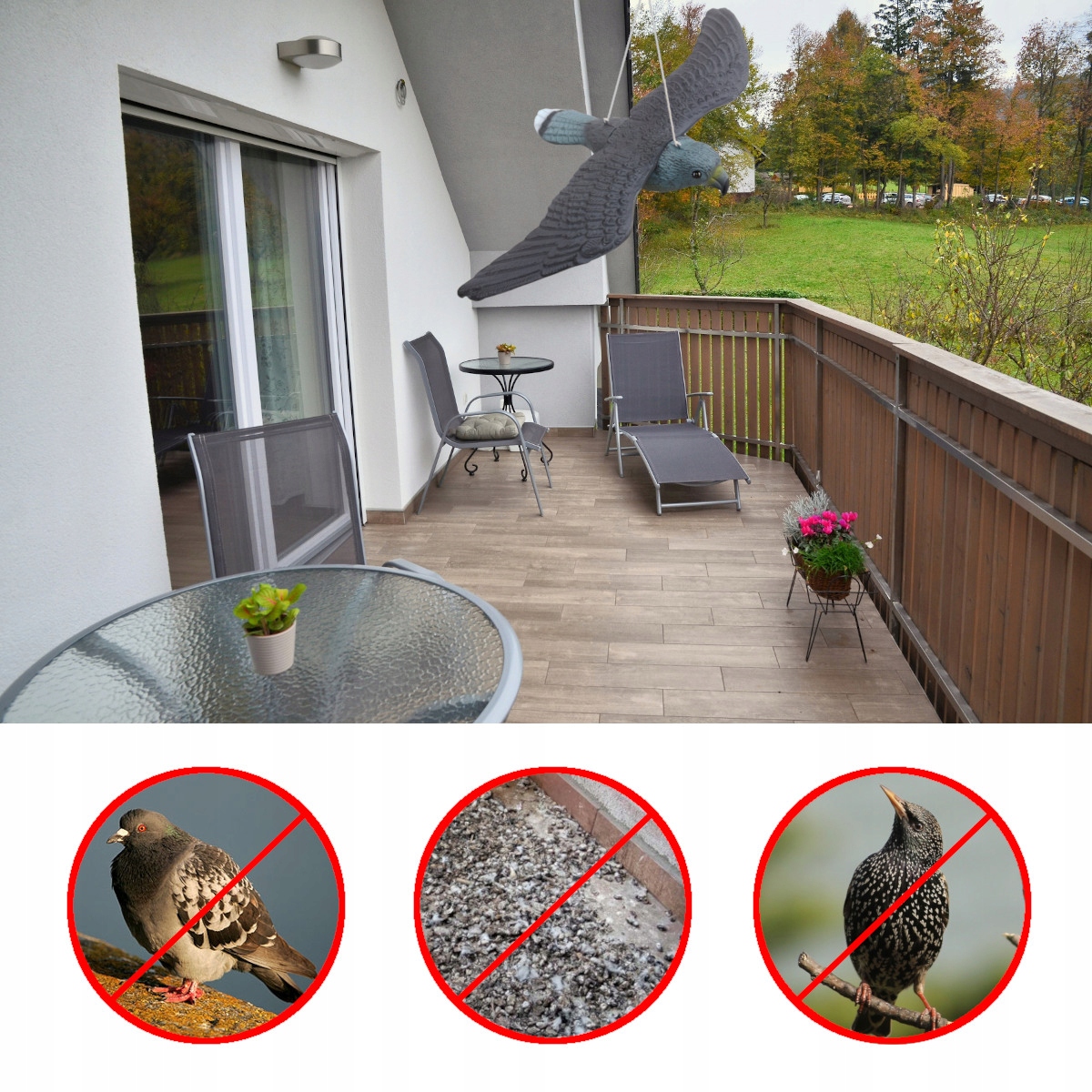 Имитирует настоящую птицу и представляет собой визуальную угрозу для мелких птиц и грызунов, эффективно отпугивая их!
