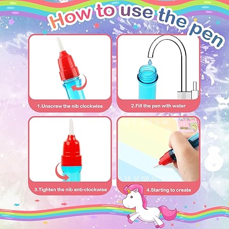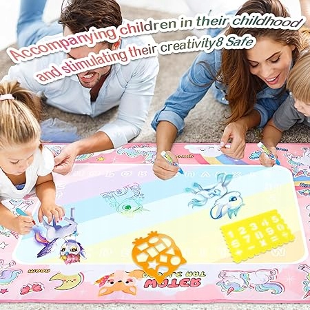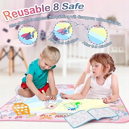 Магический коврик доставляется в красивой подарочной коробке, что делает его отличным выбором для подарка для детей. Раскраска может быть предоставлен вашему ребенку в качестве подарка на день рождения. Его можно использовать в качестве раскраски, письменной доски и чертежной доски