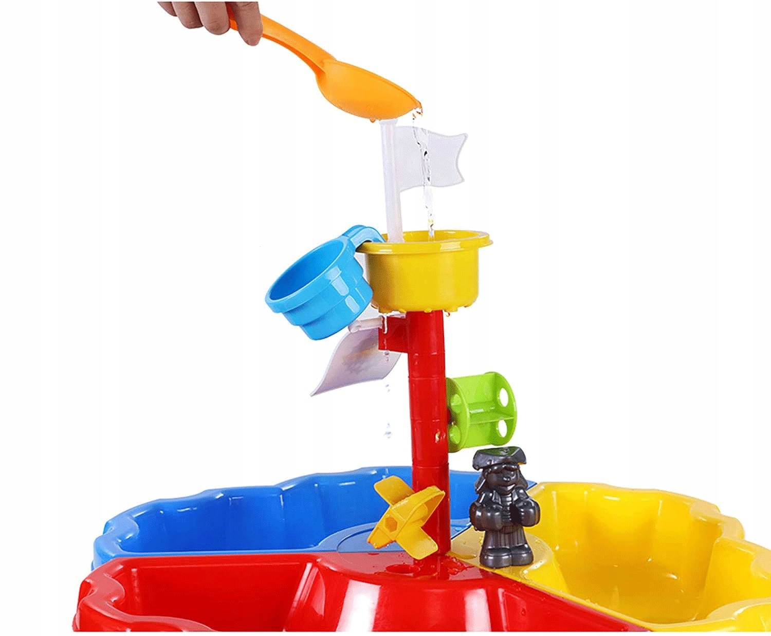 Таблица состоит из 3 больших контейнеров. вы можете заполнить песок, залить водой, а в третьем - сделать песок и воду.