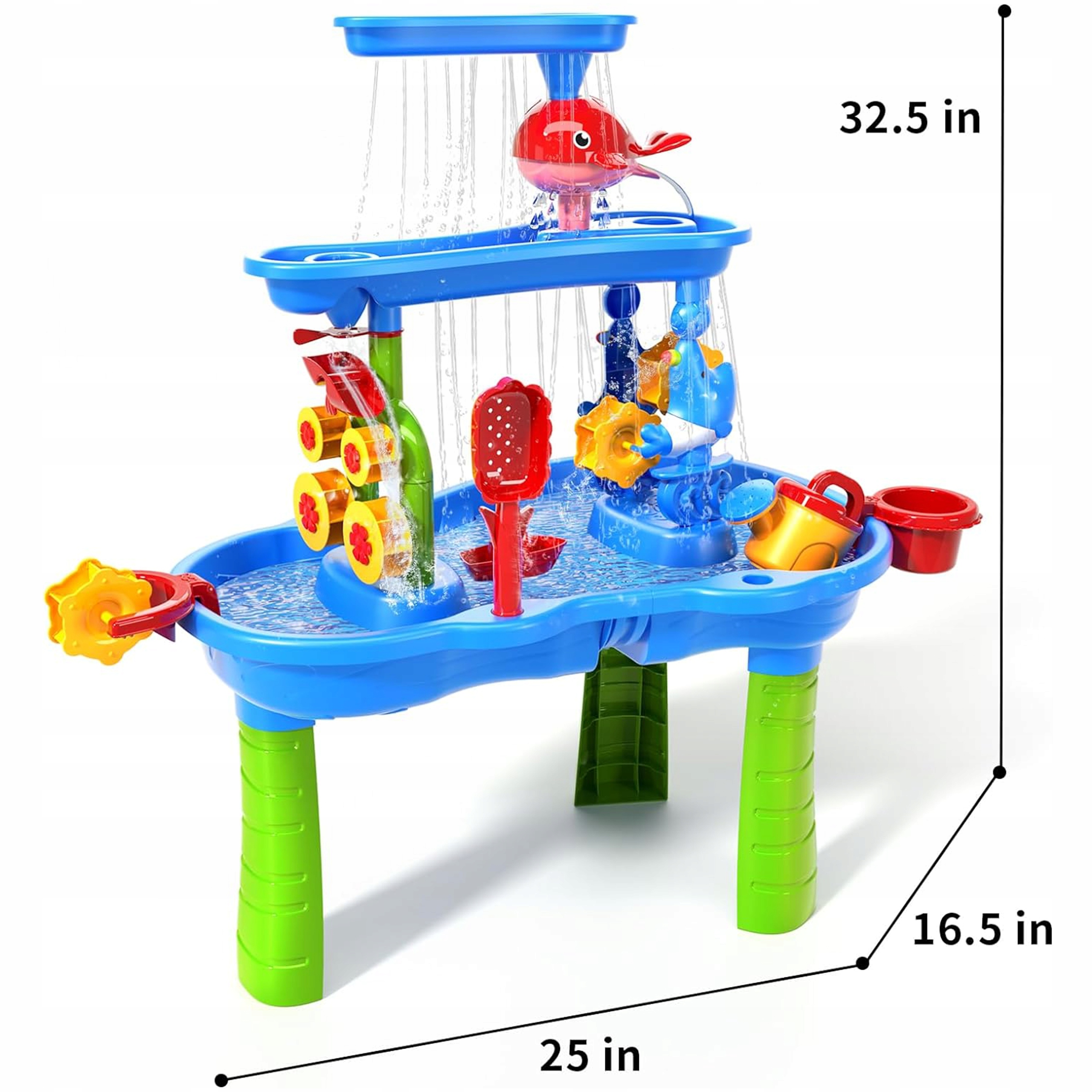 ВУПИ Жаркие дни на водном уровне, но также отличный способ избавиться от скуки, когда становится холоднее. Этот уникальный стол оснащен усовершенствованной 3-уровневой системой подачи воды, которая наверняка понравится каждому ребенку! Маленькие исследователи могут с помощью лейки налить воду в верхнюю камеру, а затем наблюдать, как водопад стекает в нижний резервуар, приводя в движение водяное колесо. Кроме того, благодаря входящим в комплект аксессуарам на этом столе можно играть с песком, как с обычным, так и с кинетическим, что делает его универсальной игрушкой на любой случай.