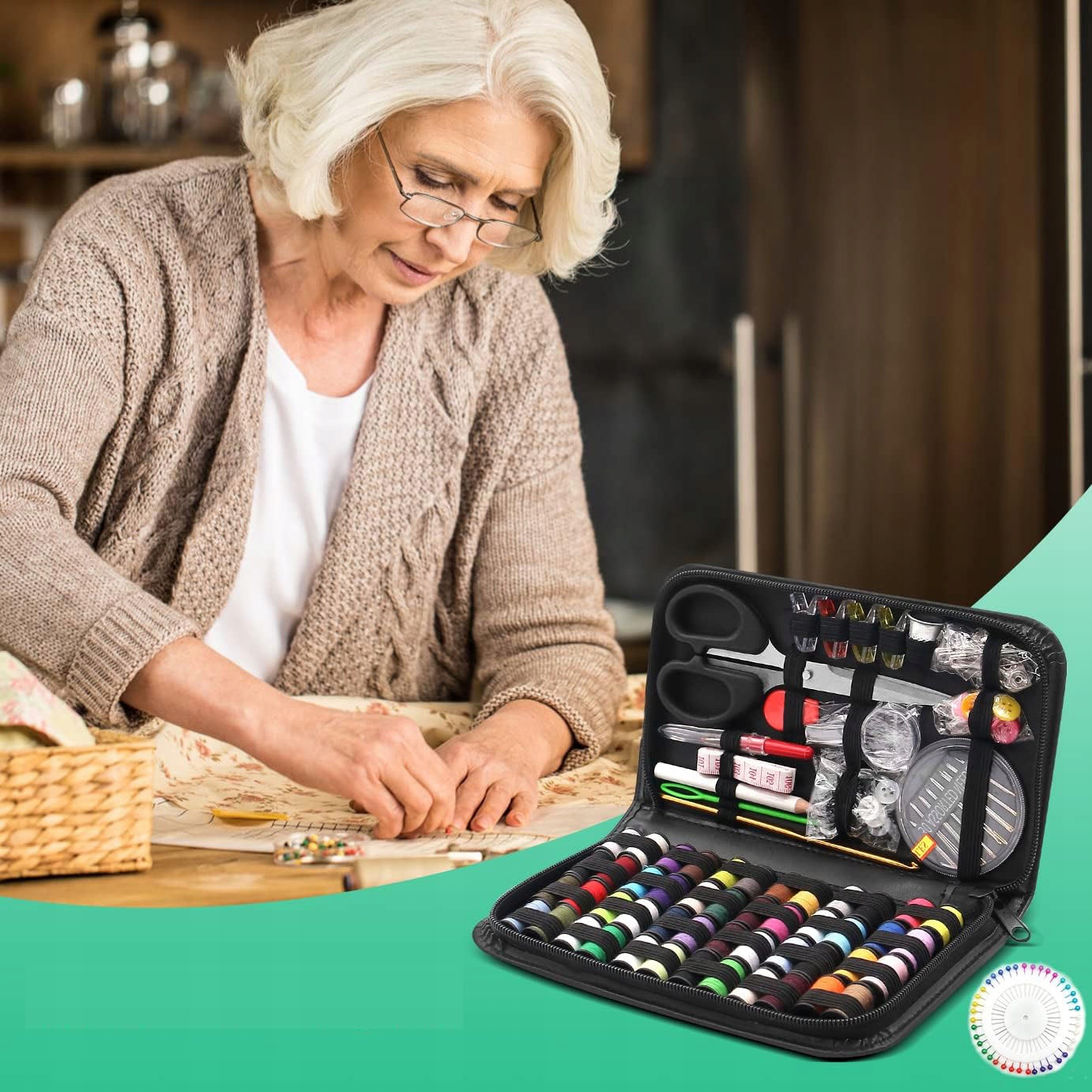 - Все необходимое для шитья и ремонта одежды собрано в одном практичном органайзере.