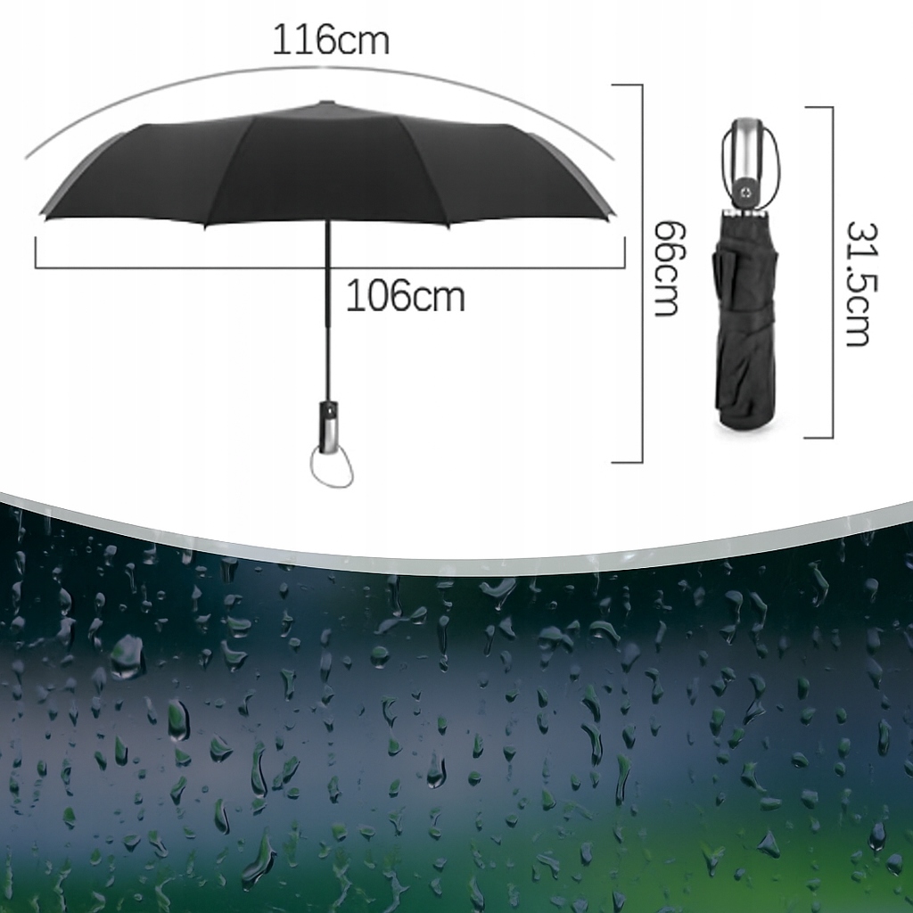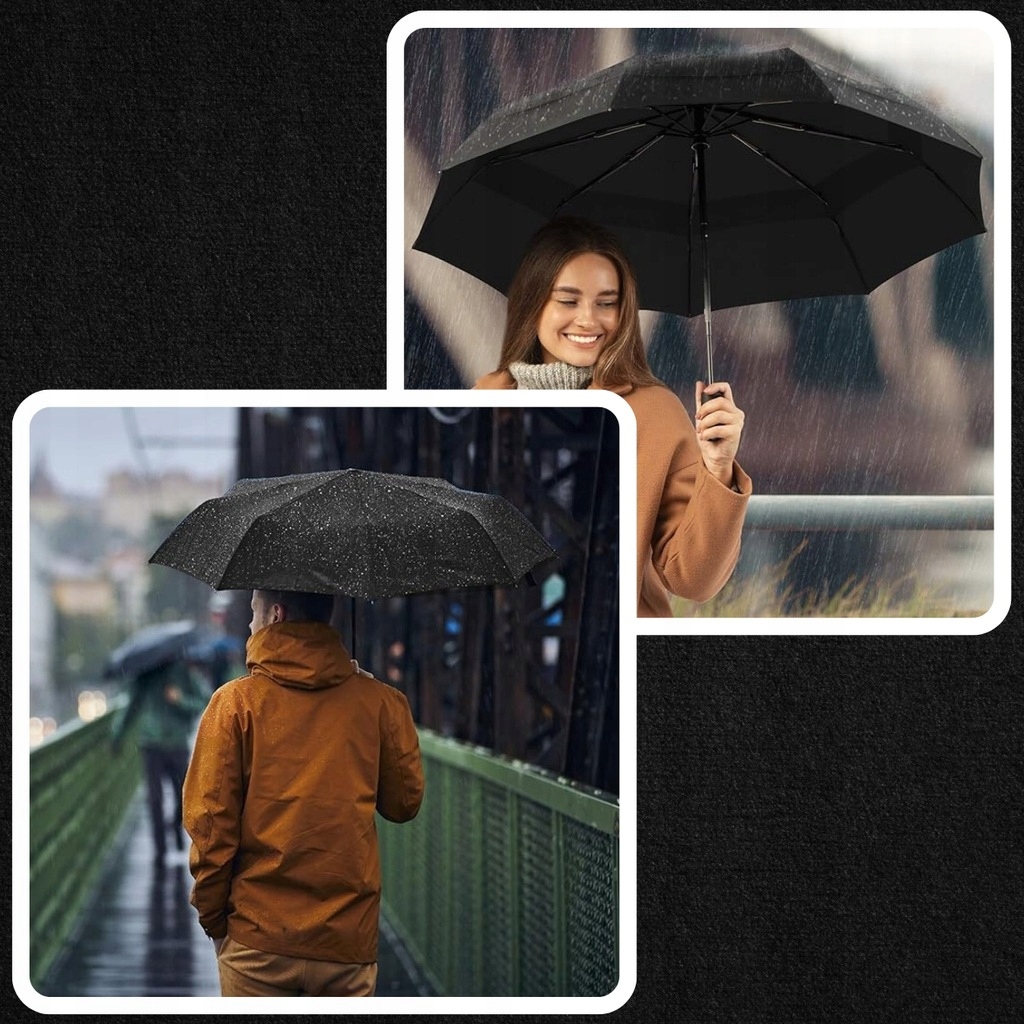 Этот прочный складной зонт представляет собой сочетание долговечности, элегантности и комфорта использования - идеально подходит как для города, так и для путешествий.
