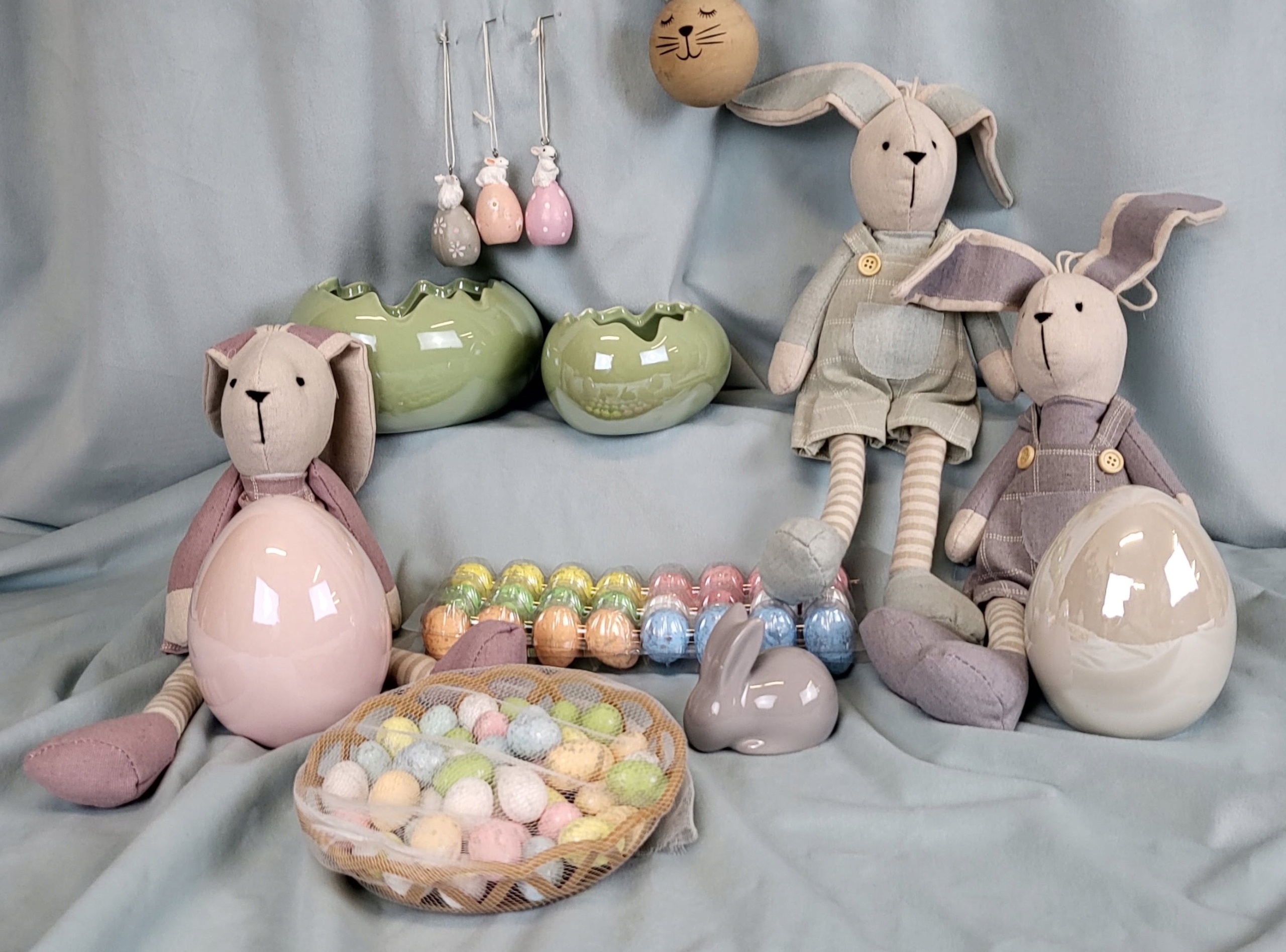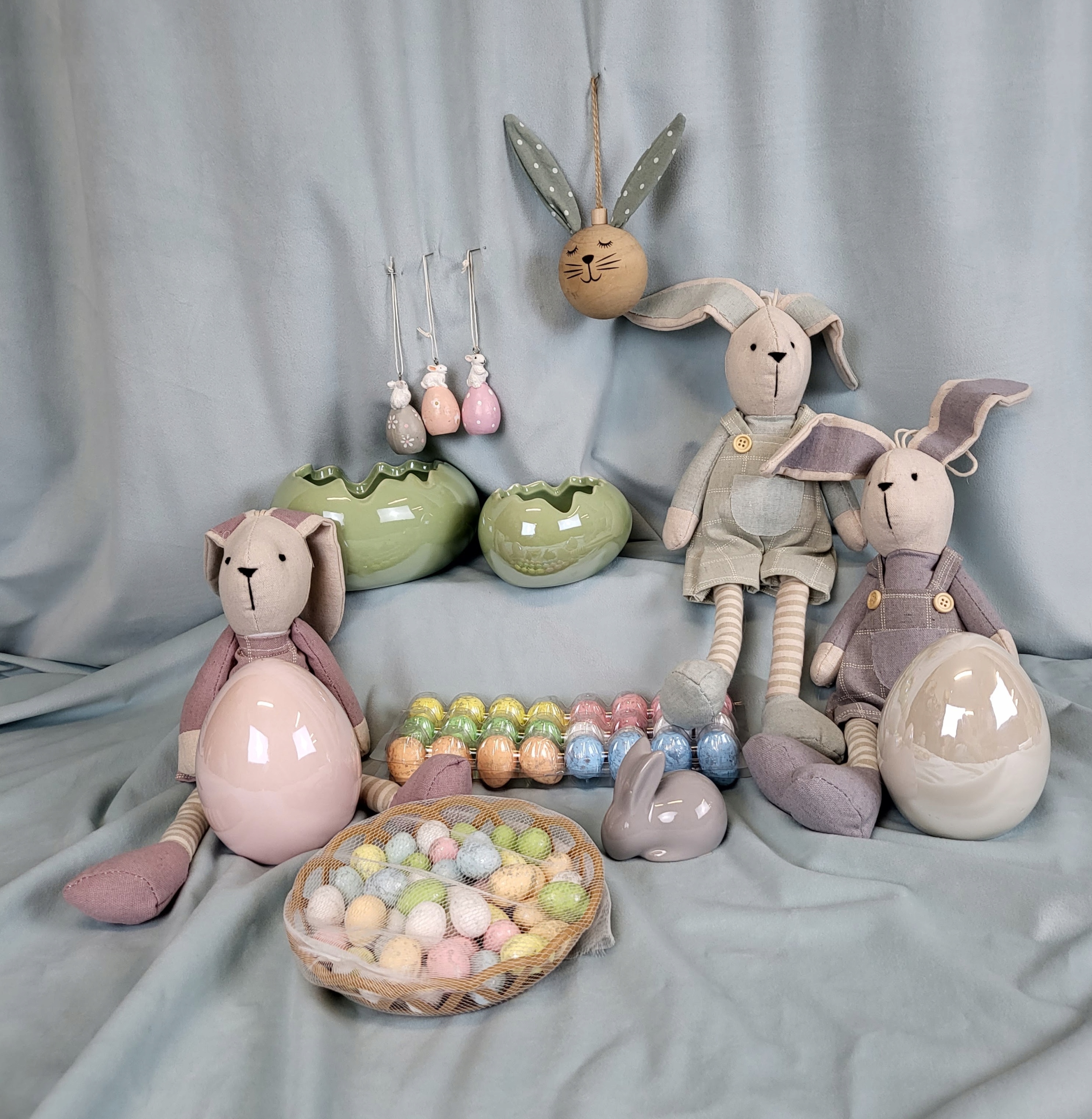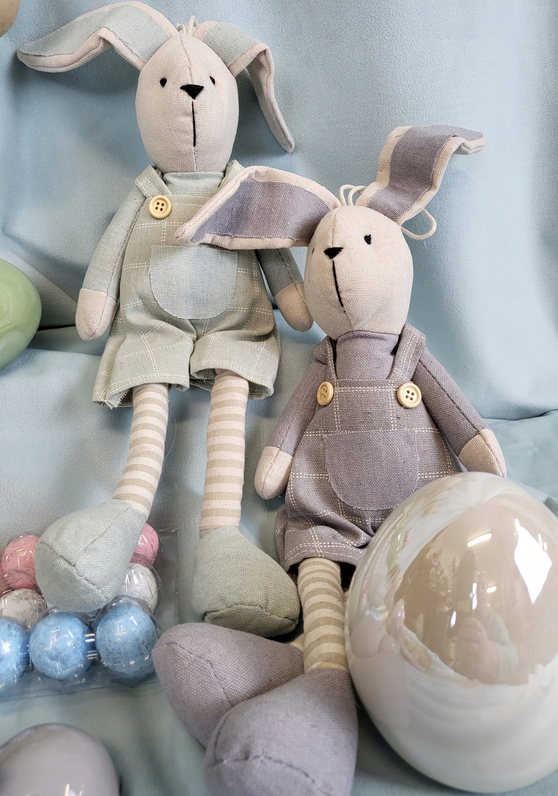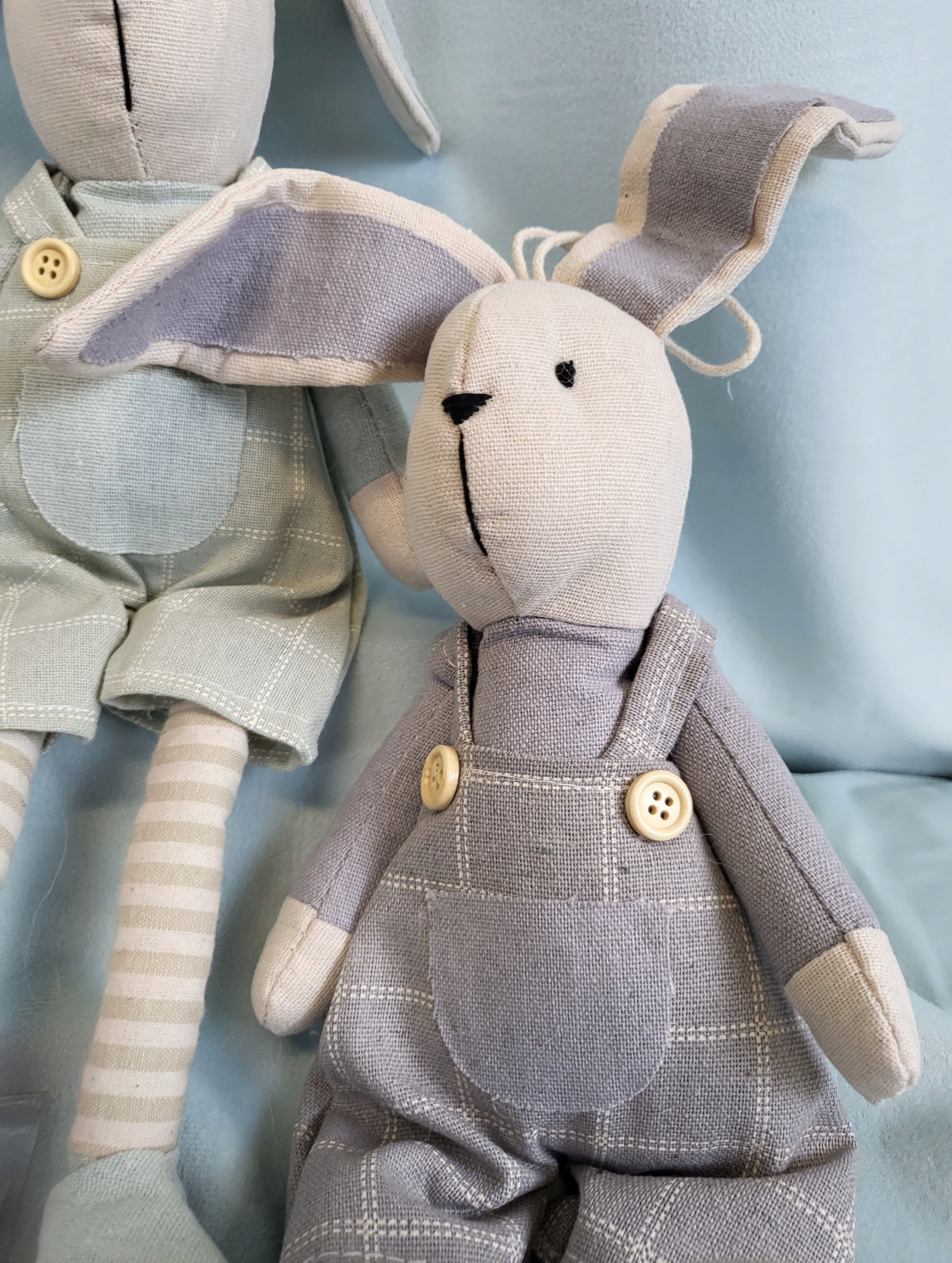 Впечатляющий и чрезвычайно очаровательный кролик из ткани. Тканевое платье или шорты подчеркнут неповторимость украшения. Прекрасное многосезонное и праздничное украшение. Также подойдет в качестве подарка ребенку, будет красиво смотреться на полке в детской комнате.