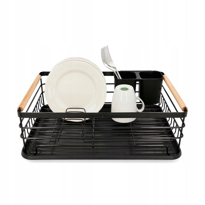Посудомоечная машина отличается высоким качеством и прочной металлической конструкцией. Поддон изготовлен из смолы и защищает столешницу от намокания. b> В комплект также входит пластиковая сушилка для столовых приборов с двумя отделениями. Металлическая черная сушилка с деревянными ручками – элегантное решение для любой кухни.
