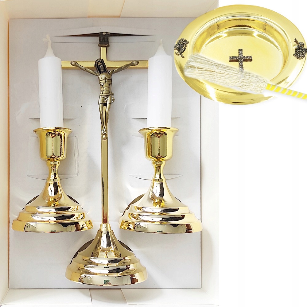 Большая Кэрол, набор в золоте - польский продукт h1> - Cross - Candlesticks - Candles - Drum - Plate - H1>