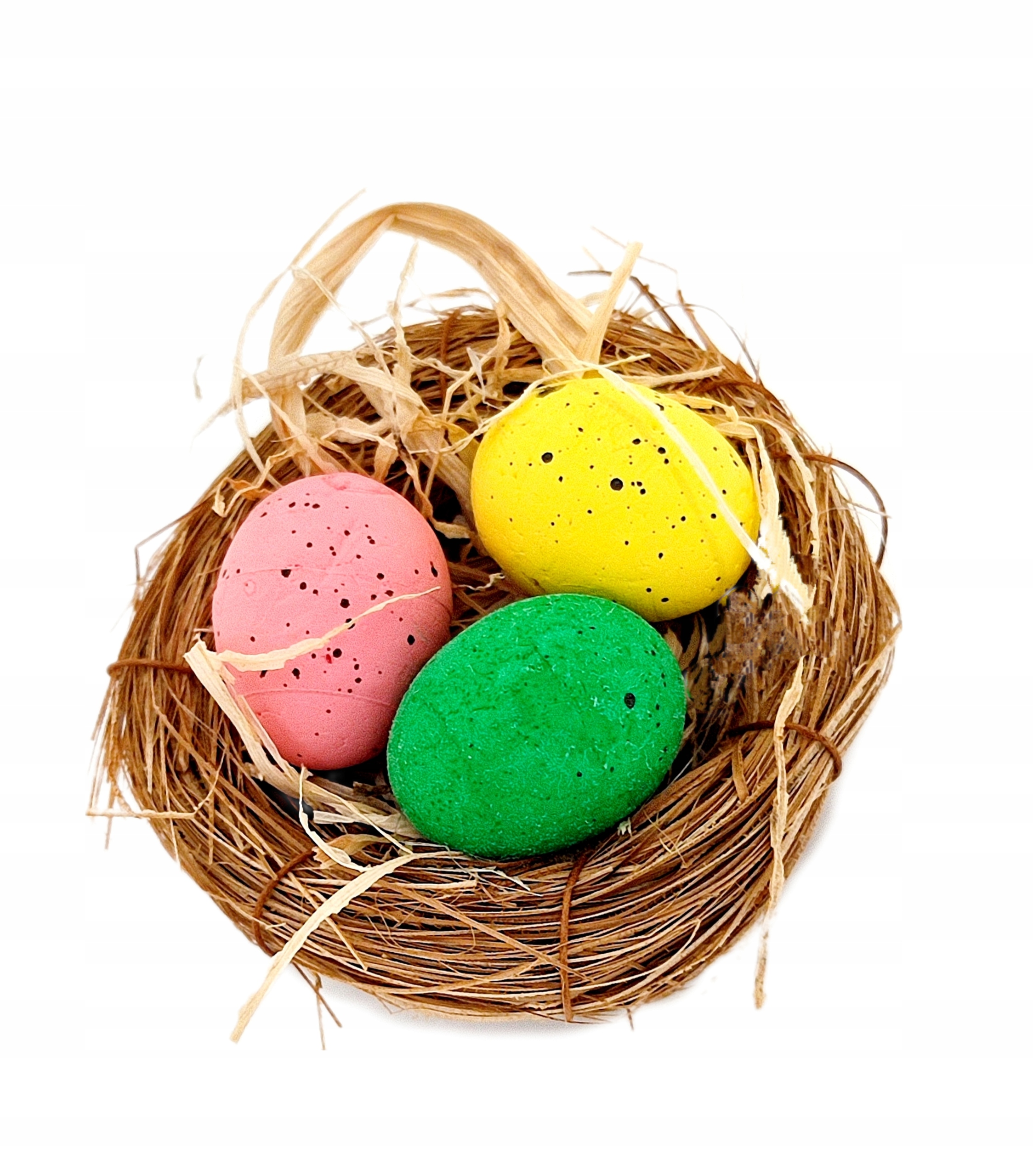 Декоративное гнездышко ручной работы из декоративного сена с тремя очаровательными красочными пасхальными яйцами. Он прекрасно украсит пасхальный стол, рождественскую корзинку и порадует каждого. Благодаря нежным цветам создает весеннюю атмосферу.