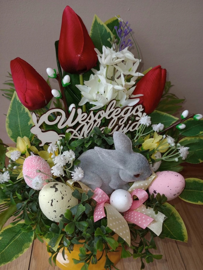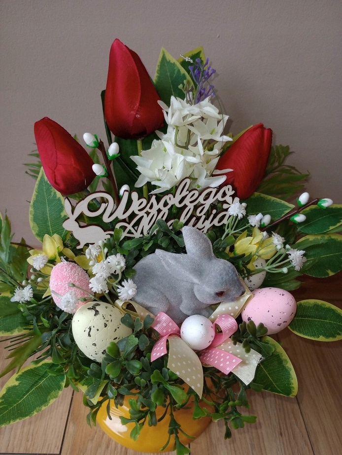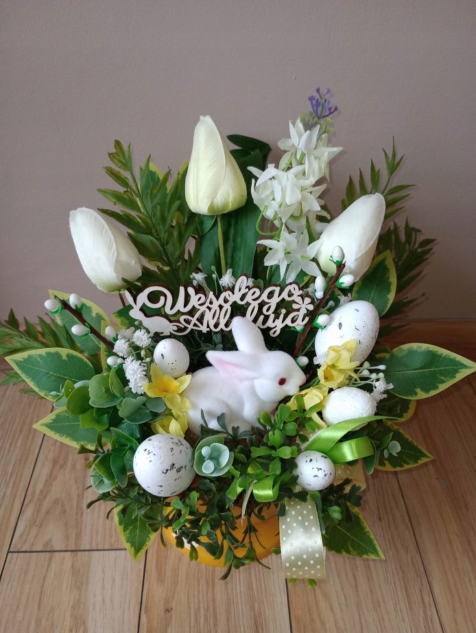 выполнен в красивом пластиковом горшочке в форме яичной скорлупы, идеален в качестве новогоднего украшения для дома или на могилу (утяжеленный)