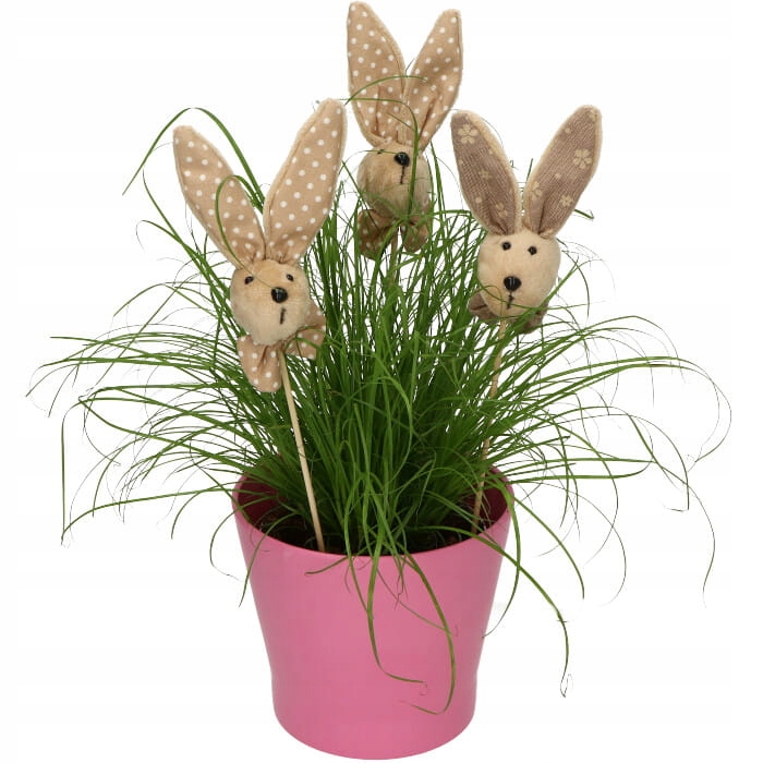 Зайчик на палочке изготовлен из материала.В наборе 2 шт. Идеально подходит для размещения в горшке или вазе. Это будет красивое украшение к Пасхе и не только.