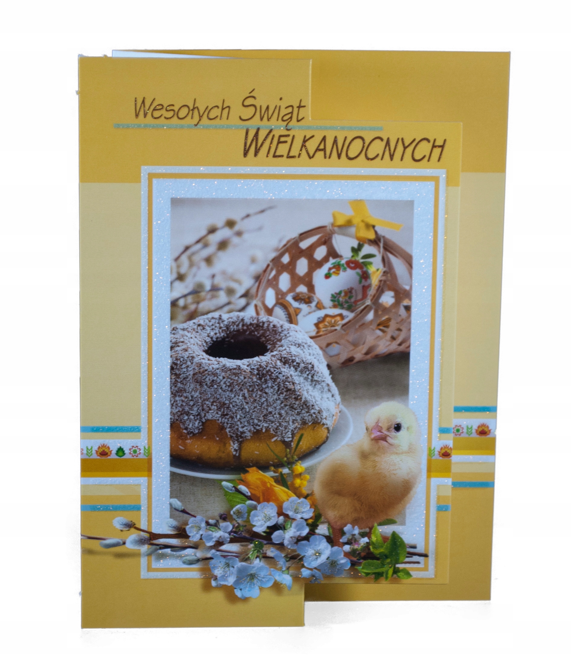 Открытки в развёрнутом виде, изящно украшены блестками, внутри напечатаны пожелания.