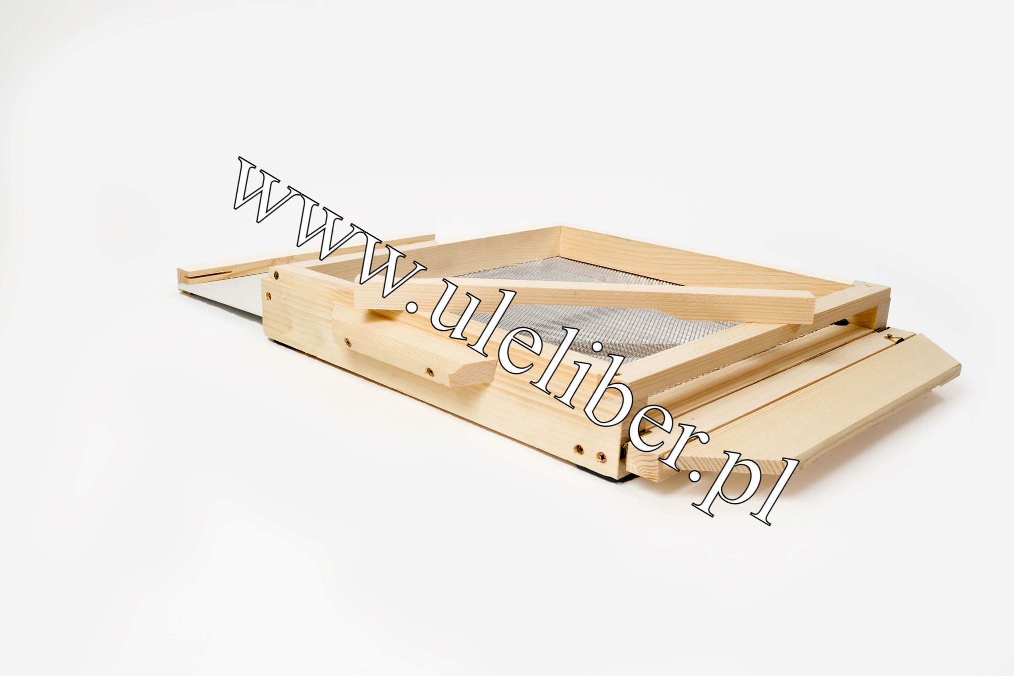 ✅Гигиеническое дно имеет вставку из белой ПВХ-плиты для борьбы с варроатозом. Доску легко содержать в чистоте, она не деформируется и не разбухает. В нижней части использовалась разрезанная и натянутая алюминиевая сетка, которая защищает пчел от потери ног. Он имеет хорошую вентиляцию, что особенно важно при содержании передвижной пасеки и когда мы хотим ограничить настроение роя.