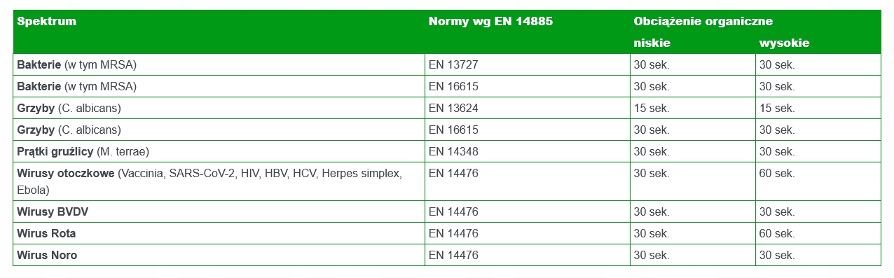 Действие:Действует за 15 секунд. для грибов и 30 сек. против вирусов (в т.ч. Рота, Норо), бактерий, туберкулезной палочки