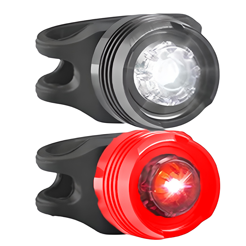 В комплект входят два фонаря: передний и задний. У одного из них красный светодиод, у другого белый.