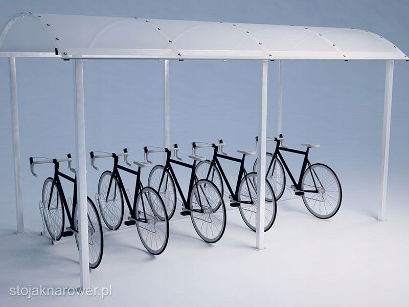 Велопарковка «Зорза» на 10 велосипедов. Главным преимуществом навеса является возможность установки дополнительных модулей крыши, что обеспечивает защиту большего количества велосипедов. Он полностью совместим с нашими стендами (RAD, CROSS, ECHO PION, модели U-типа), доступными на наших аукционах Allegro. Имеем полную проектную документацию на укрытие, включая документацию по нагрузке и прочности.