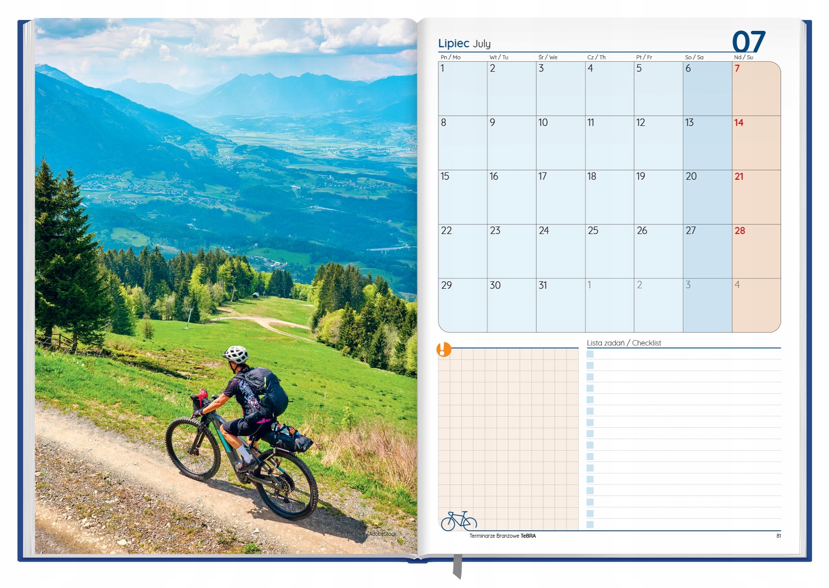 Планировщик велосипедных прогулок организован на каждой странице с примечаниями к следующей неделе в практичном формате B5.