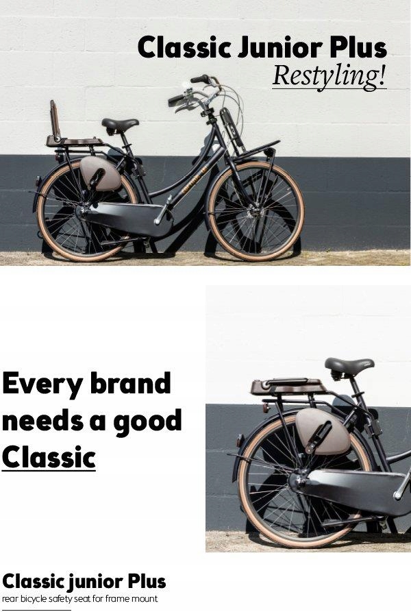 Велосиденье Bobike Classic Junior Plus поставляется с крепежом для крепления к подседельной трубе. Этот фитинг подходит для круглых труб диаметром 28-40 мм и требует 80 мм пространства для труб. Подходит для велосипедов диаметром 28 и 26 дюймов. Если велосипед имеет багажник, ширина багажника не должна превышать 160 мм.