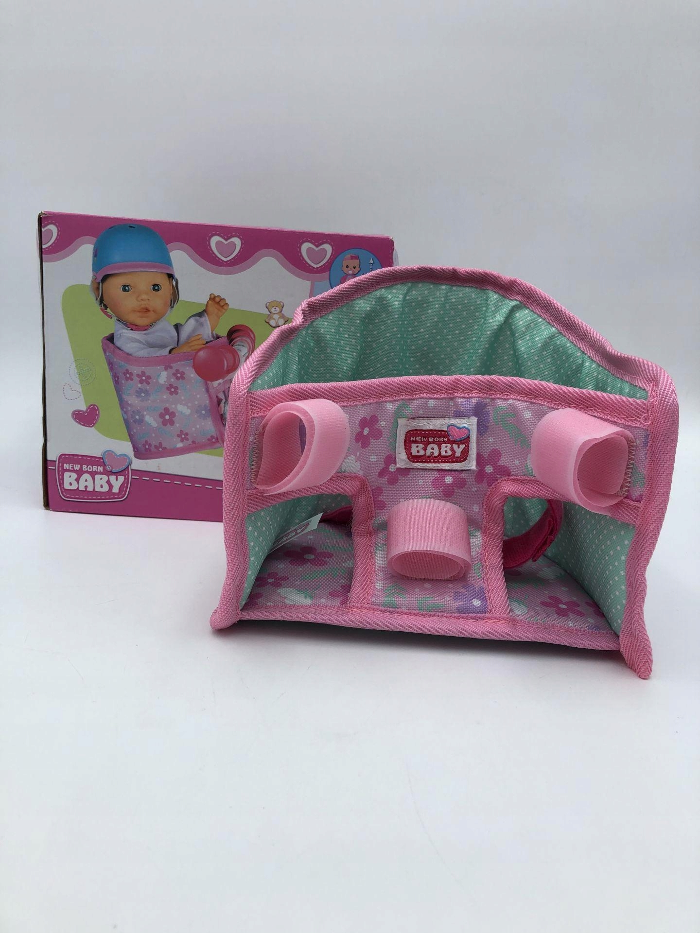 Велокресло New Born Baby можно легко прикрепить к рулю велосипеда с помощью липучки, и кукла сможет сидеть в нем