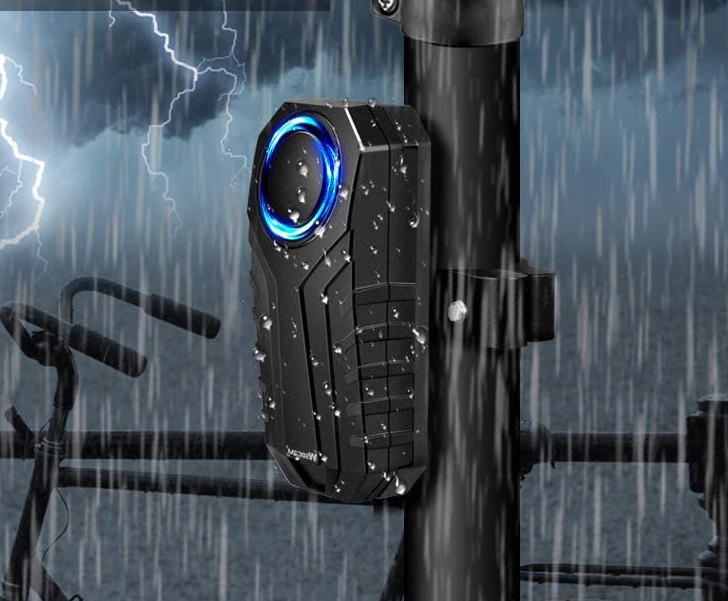 Беспроводная велосипедная сигнализация имеет прочный корпус – он изготовлен из АБС-пластика, имеет резиновое уплотнение, поэтому его можно использовать в любых погодных условиях.