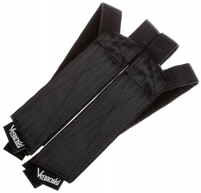 6. Ремни Veganski являются направленными, и каждый из них следует располагать на правой и левой педали соответственно. графика. Можно обратиться к острому концу толстого (верхнего) ремешка, который после установки должен быть направлен назад и за пределы педалей (смотря сверху)