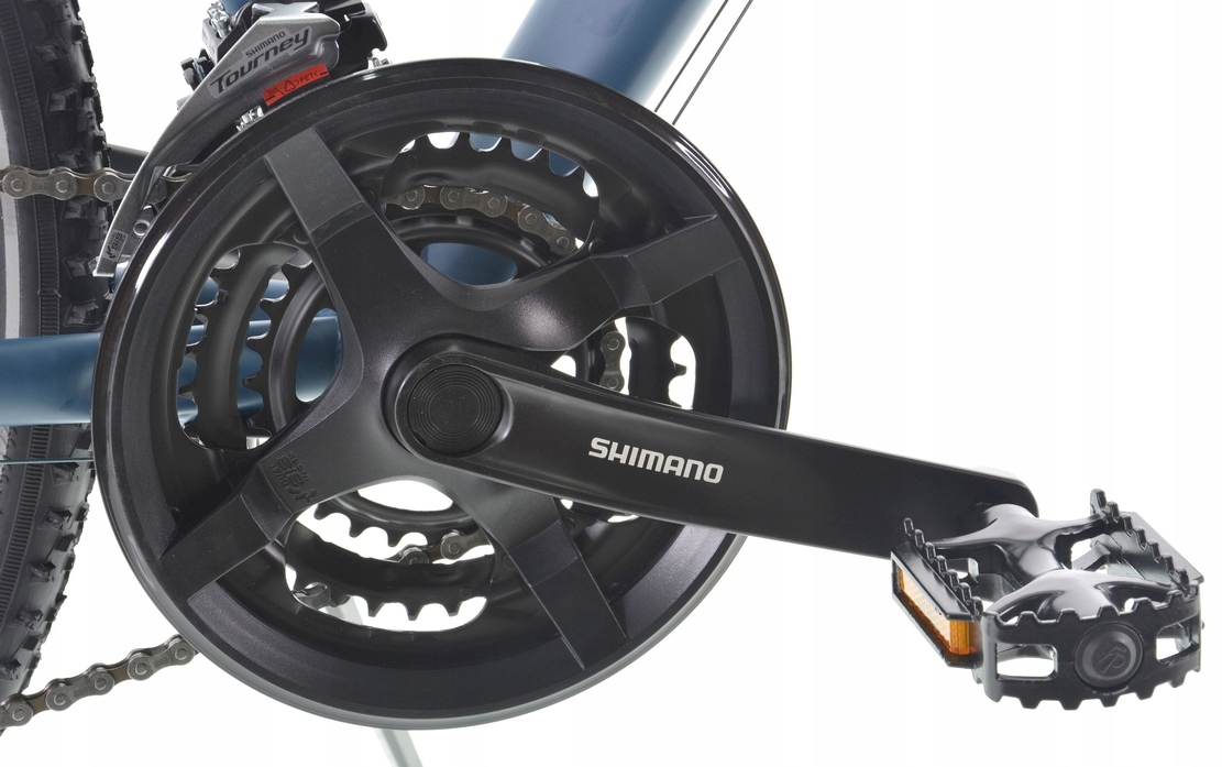 - Шатунный механизм - трехрядный кривошип SHIMANO FC-TY301 с шестернями 48-38-28, работает с цепью Shimano с 8-скоростной кассетой SHIMANO HG41. Привод работает точно и тихо.