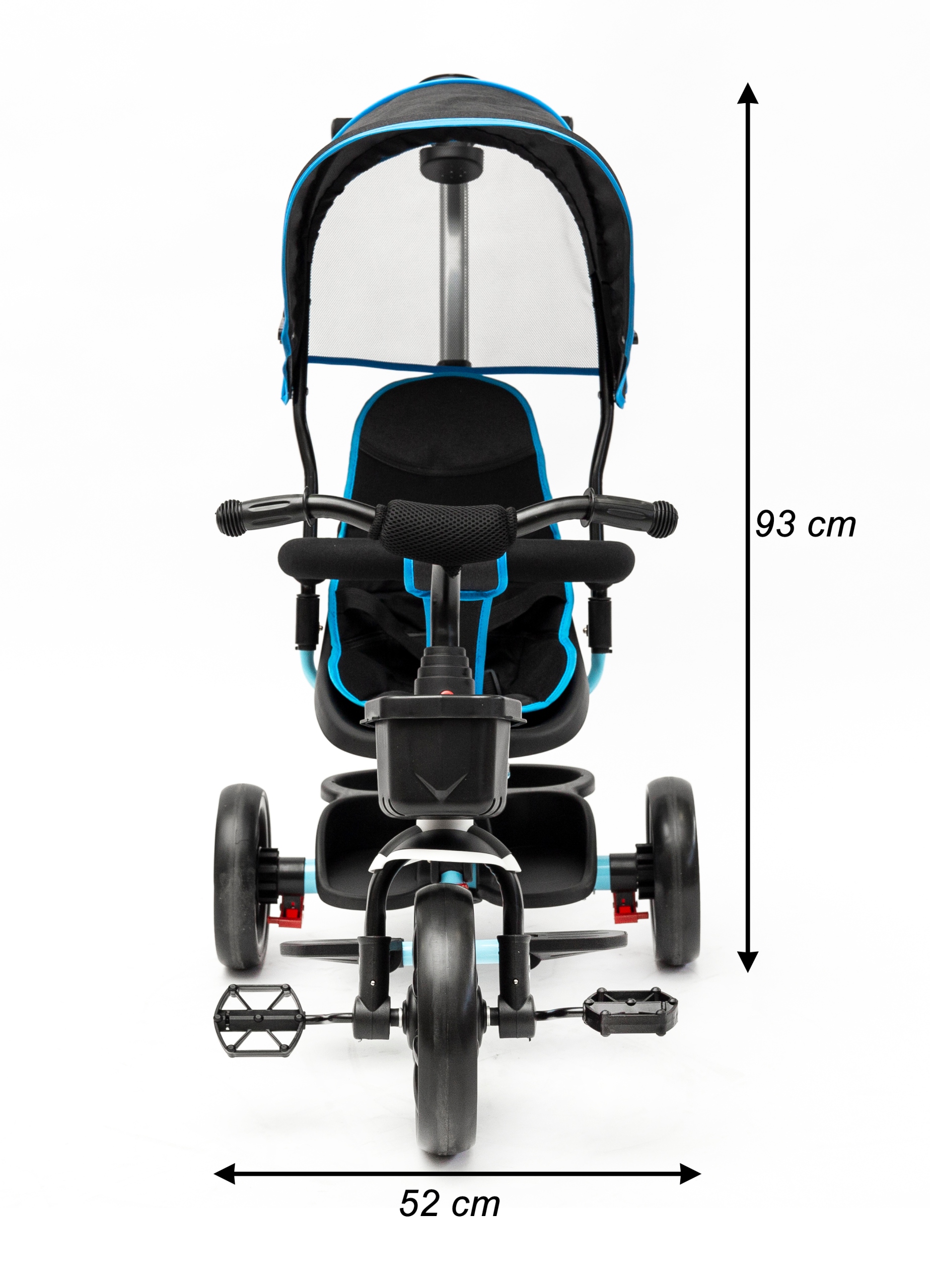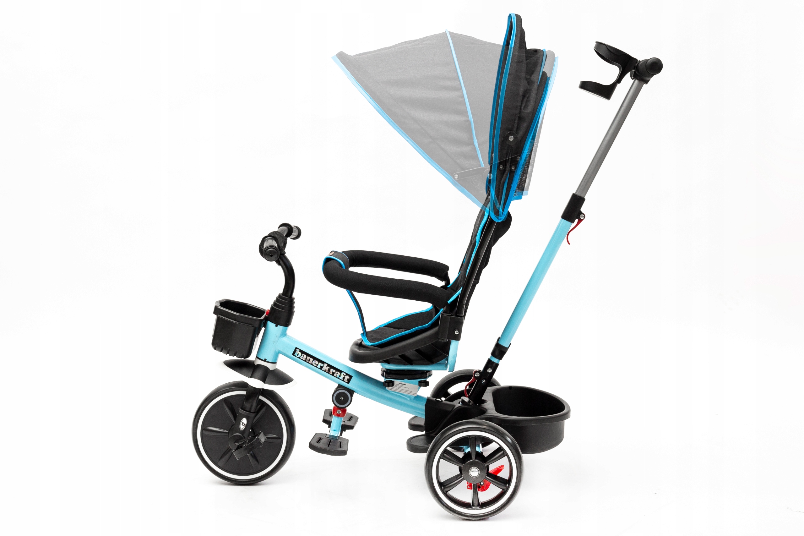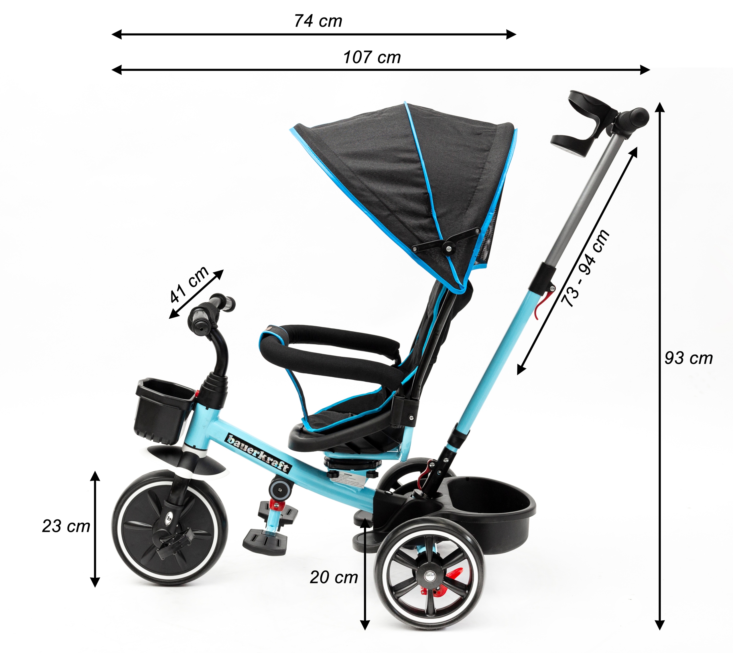Первый велосипед для каждого ребенка – это обещание максимального удовольствия и возможность чрезвычайно легко передвигаться . Удобное профилированное сиденье, высокая устойчивая спинка, защищающий от чрезмерного солнечного света навес, два защитных поручня и специальное место для отдыха ног – это, безусловно, его преимущества. В целях безопасности ребенка использована направляющая, спасибо. благодаря чему воспитатель имеет полный контроль над поездкой, и благодаря этому наш велосипед становится обязательным первым транспортным средством каждого ребенка. Дополнительной достопримечательностью является передняя корзина, благодаря которой юный водитель сможет взять с собой в поездку все свои самые ценные сокровища. В задней части велосипеда имеется второй контейнер для других необходимых вещей, а на направляющих предусмотрено место для бутылки или чашки с напитком. Мы заботимся о том, чтобы все необходимое было под рукой