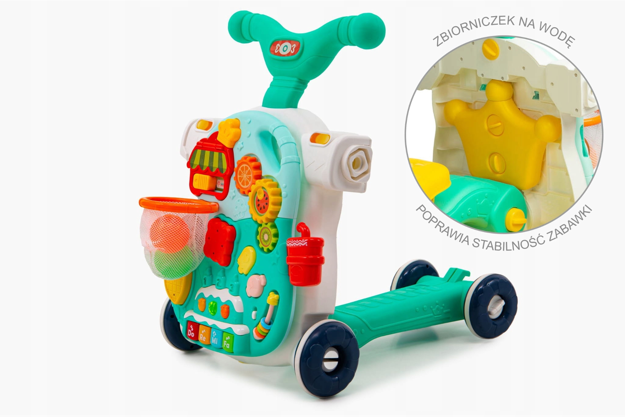 Эта игрушка не только обещает часы фантастического веселья, но и поддерживает развитие ребенка на многих уровнях. От обучения ходьбе до развития навыков равновесия на самокате и до стимулирования воображения. Переднюю часть толкателя можно легко отсоединить и использовать как самостоятельную игрушку, которая также служит основой для учебного стола, побуждая малыша открывать для себя науку через игру. Развивающий стол предлагает взаимодействовать с различными элементами, такими как разноцветное пианино, вращающиеся шестеренки и сортировщик фигур, поддерживая развитие руки ребенка и логического мышления.