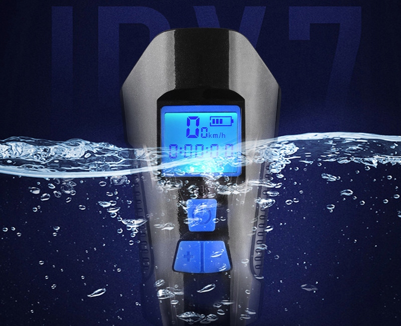 Велофара на аккумуляторе – это не просто обычное освещение – датчик, входящий в комплект, и 5 встроенных режимов измерения б> сделать его многофункциональным записывающим устройством. Благодаря этому вы можете проверить пройденное расстояние (режим ODO), среднюю скорость (AVS), пройденное расстояние за один маршрут (DST), время вождения (TM) или максимальная скорость (MXS). Все это отображается на четком дисплее с подсветкой. Управление счетчиком осуществляется с помощью больших водонепроницаемых кнопок на устройстве.