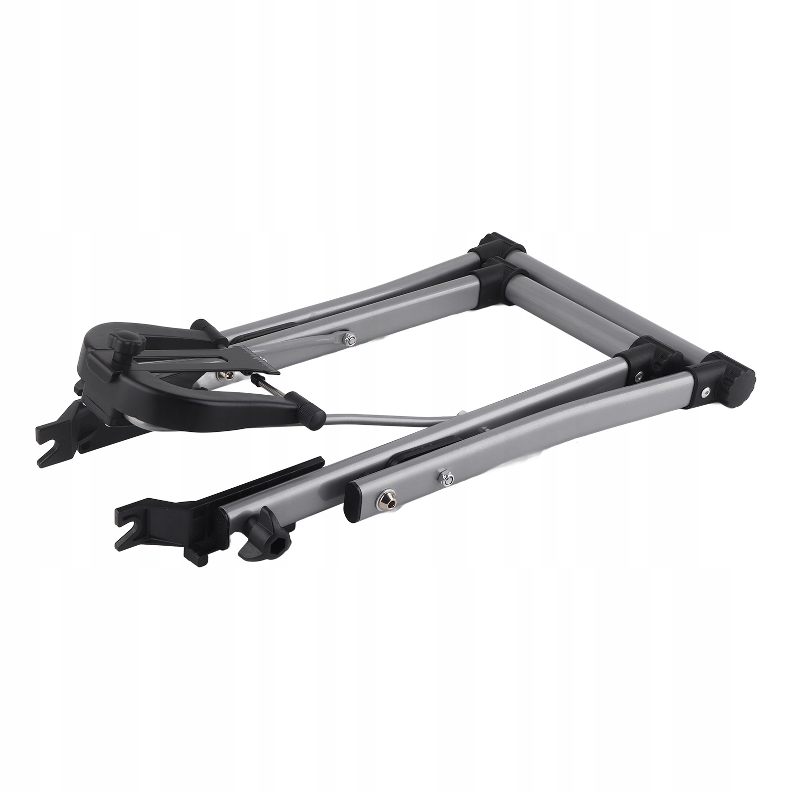 1. Достаточно прочный и долговечный каркас. Складная и интеллектуальная конструкция для простоты эксплуатации. 2. Благодаря компактному дизайну подставка не займет много места. 3. Измерительная часть изготовлена из пластика для защиты колес от царапин. 4. Поверните диск, чтобы трансформировать вырезы. Линейка и наперсток для наблюдения за колебательным состоянием обода. 5. Верхние вырезы для крепления передних колес на подставке, нижние вырезы для крепления задних колес.