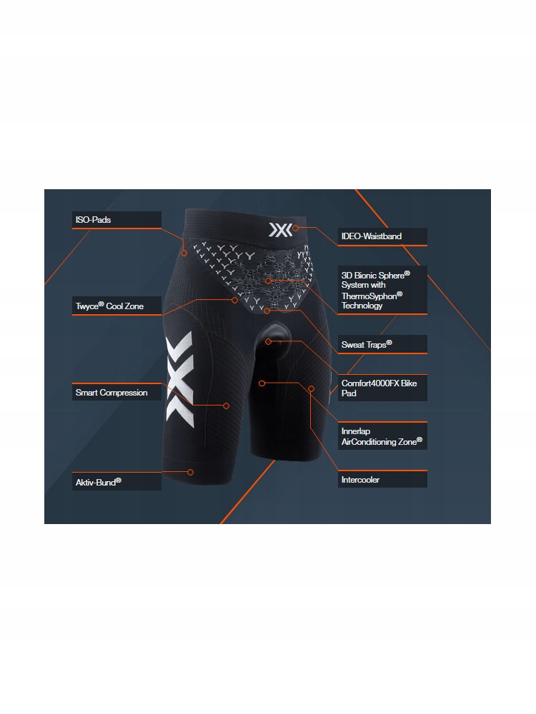 100% эффективность? Благодаря двойному охлаждению вы можете сделать гораздо больше. Женские велосипедные шорты X-BIONIC® TWYCE 4.0 с набивкой поколения X-BIONIC 4.0 повышают ваши результаты благодаря превосходной регуляции микроклимата кожи. Ключевым элементом является система ThermoSyphon®, новое поколение системы 3D Bionic Sphere®, увеличенной на 200%. Он охлаждает вас, когда вы потеете, и согревает, когда вам холодно. В отличие от легендарной системы 3D Bionic Sphere®, сложная трехмерная структура внутренних и внешних воздушных каналов теперь дополнена Y-образными элементами. Это еще больше улучшает естественную термодинамику системы, позволяя значительно повысить эффективность. Уникальная технология PartialKompression® снижает усталость, обеспечивает больший контроль мышц и улучшает снабжение питательными веществами – и все это без пренебрежения охлаждением. Высококачественная интегрированная подушечка обладает высоким амортизирующим эффектом и имеет эргономичную форму, обеспечивающую максимальный комфорт при езде на велосипеде или вращении. Эти велосипедные шорты представляют собой точный инструмент для максимальной производительности благодаря новому качеству производства X-BIONIC® и технологии Retina® сверхвысокого разрешения. Эта суперспортивная велосипедная одежда с удобными лямками изготовлена на новейших высокоточных станках и поэтому предлагает значительно большую плотность и эффективность всех функций. Проверенная зона кондиционирования Innerlap, интеркулер, SweatTraps® и ISO-Pad теперь работают еще эффективнее, чем когда-либо прежде.