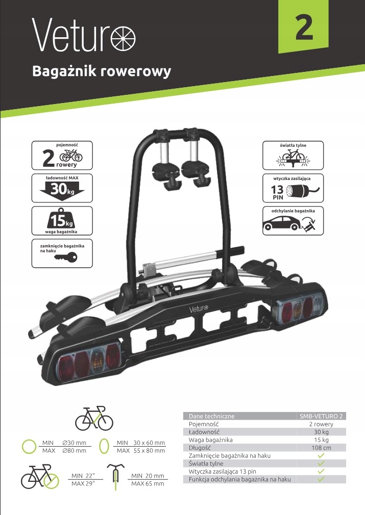 ВЕЛОСИПЕДНОЕ крепление ДЛЯ БУКСИРОВОЧНОГО КРЮКА 2 II STEINHOF VETURO BIKES 30 КГ + БЕСПЛАТНО
