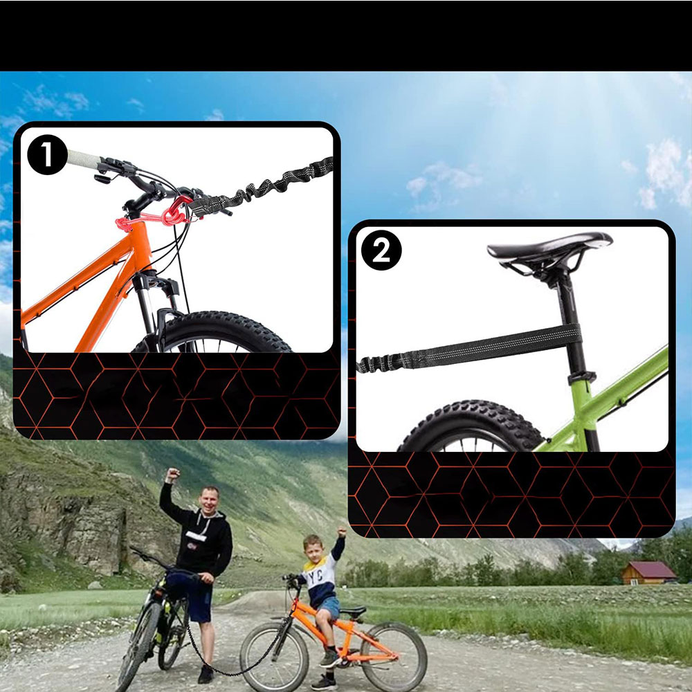 🚵♂🚵 【Высокое качество】 Прицепная веревка изготовлена из высококачественного и прочного нейлонового материала, прочного, гибкого, поглощающего удара и может быть комфортно отбуксирован на холме. Благодаря алюминиевому сплаву и структуре, защищающей от многих шоков, это облегчает вождение. Велосипедная буксирная веревка достаточно гибкая, прочная, гибкая и амортизационная, удобная для буксировки во время вождения, подходит для детей и взрослых.